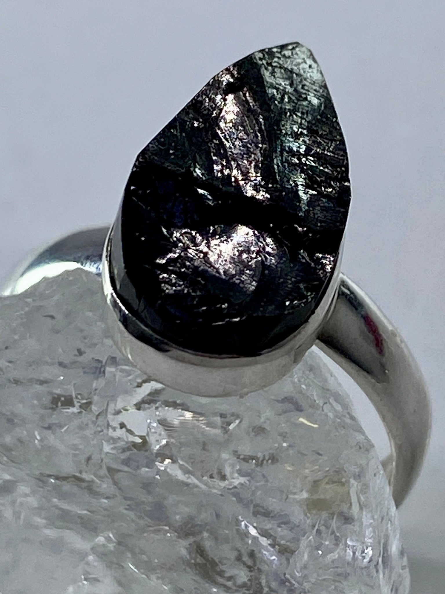 Shungite Sterling Silver Ring: Karelian Pear-Cut Stone