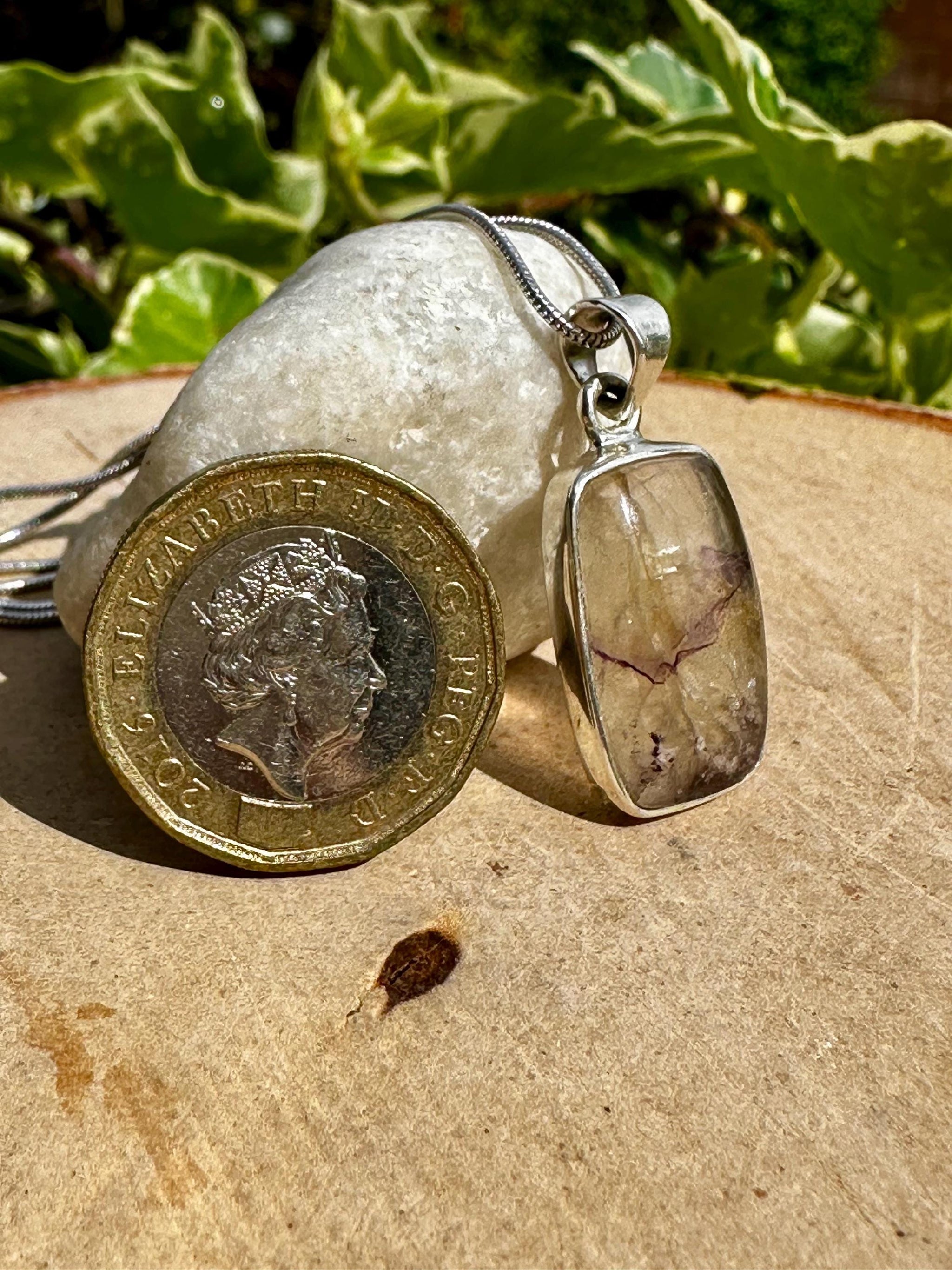 A high quality and extremely rare Blue John (also known as Derbyshire Spar) and 925 silver pendant.