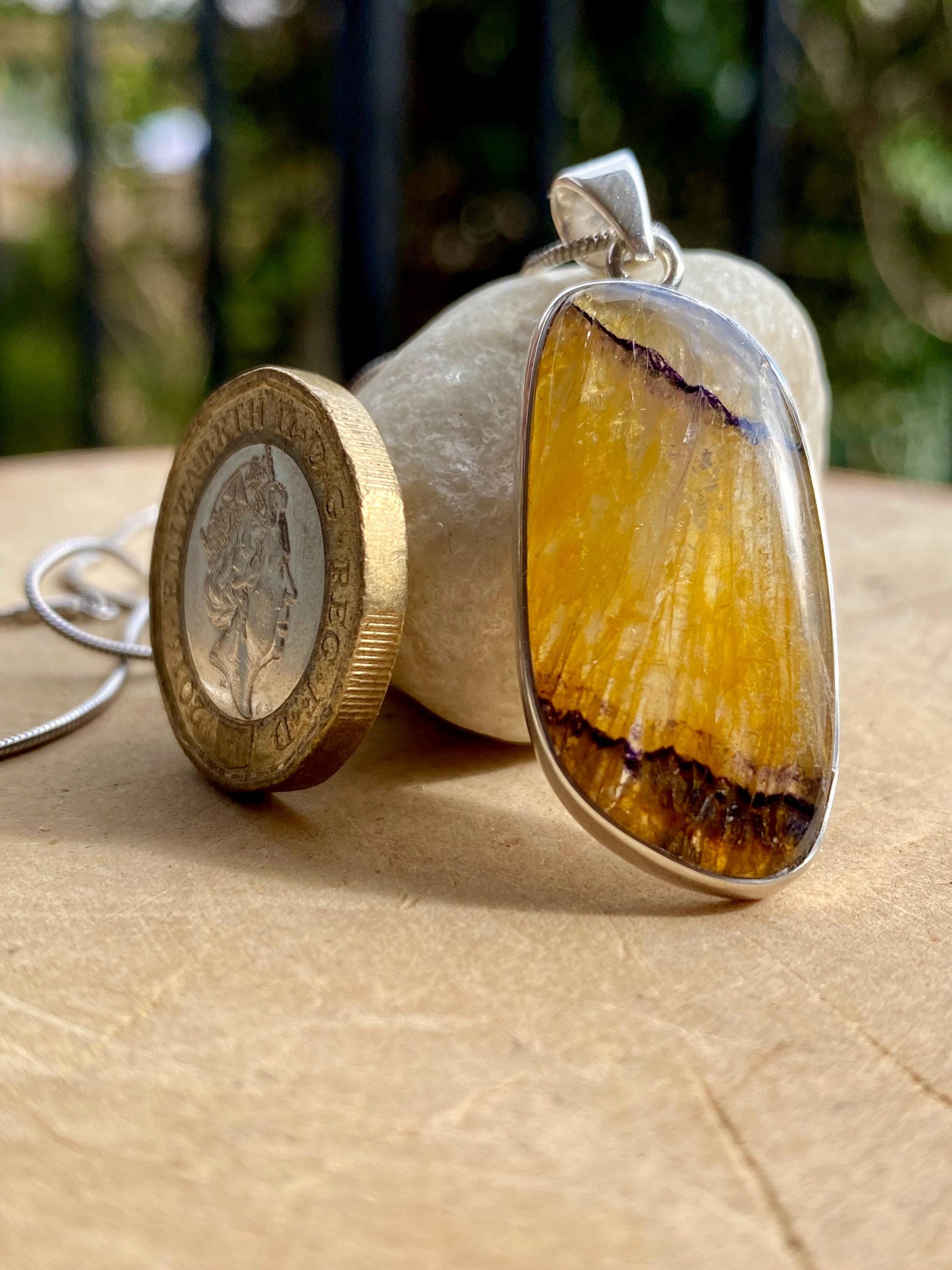 Rare Blue John Pendant, Rectangle 32mm x 15mm, Sterling Silver, Derbyshire UK