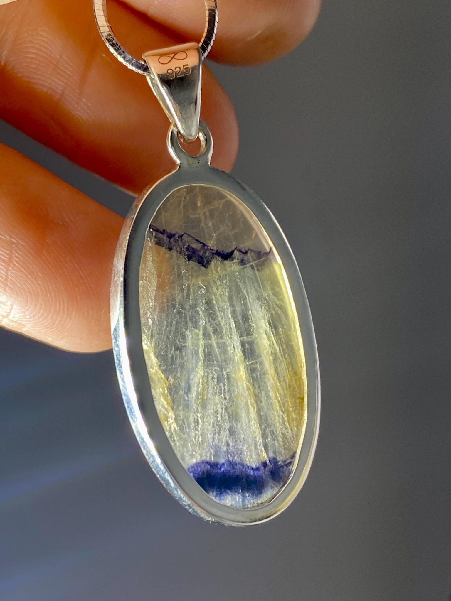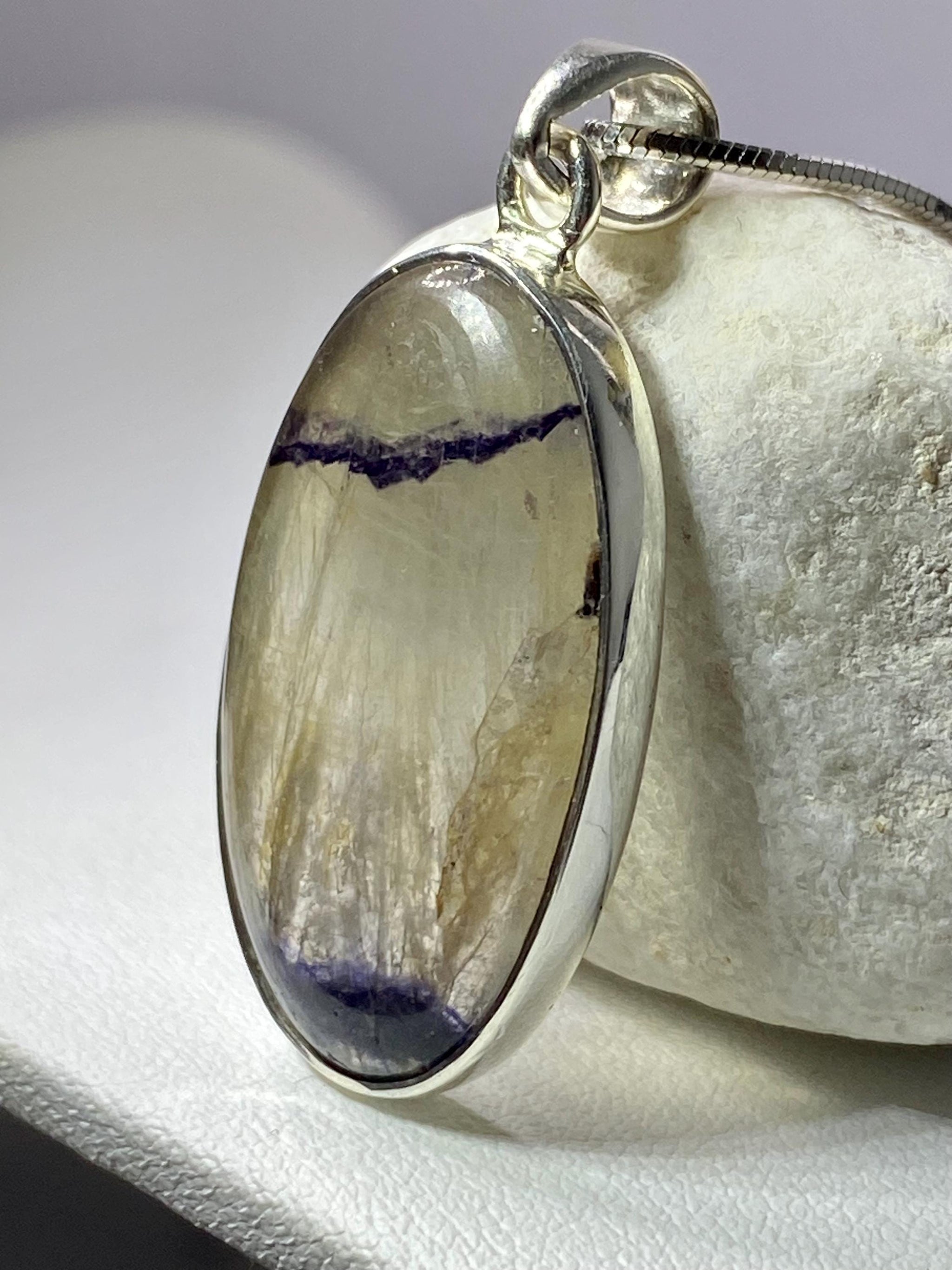 A high quality and extremely rare Blue John (also known as Derbyshire Spar) and silver pendant.
