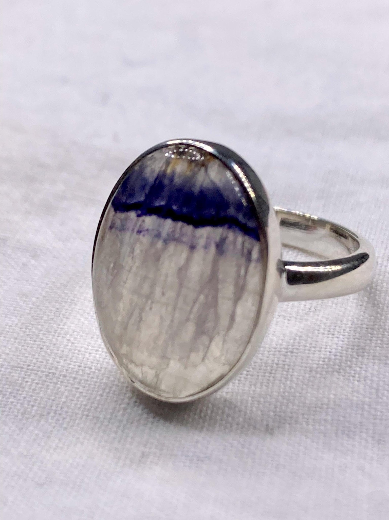 An extremely rare and high quality Blue John Gemstone (also known as Derbyshire Spar) and silver ring.