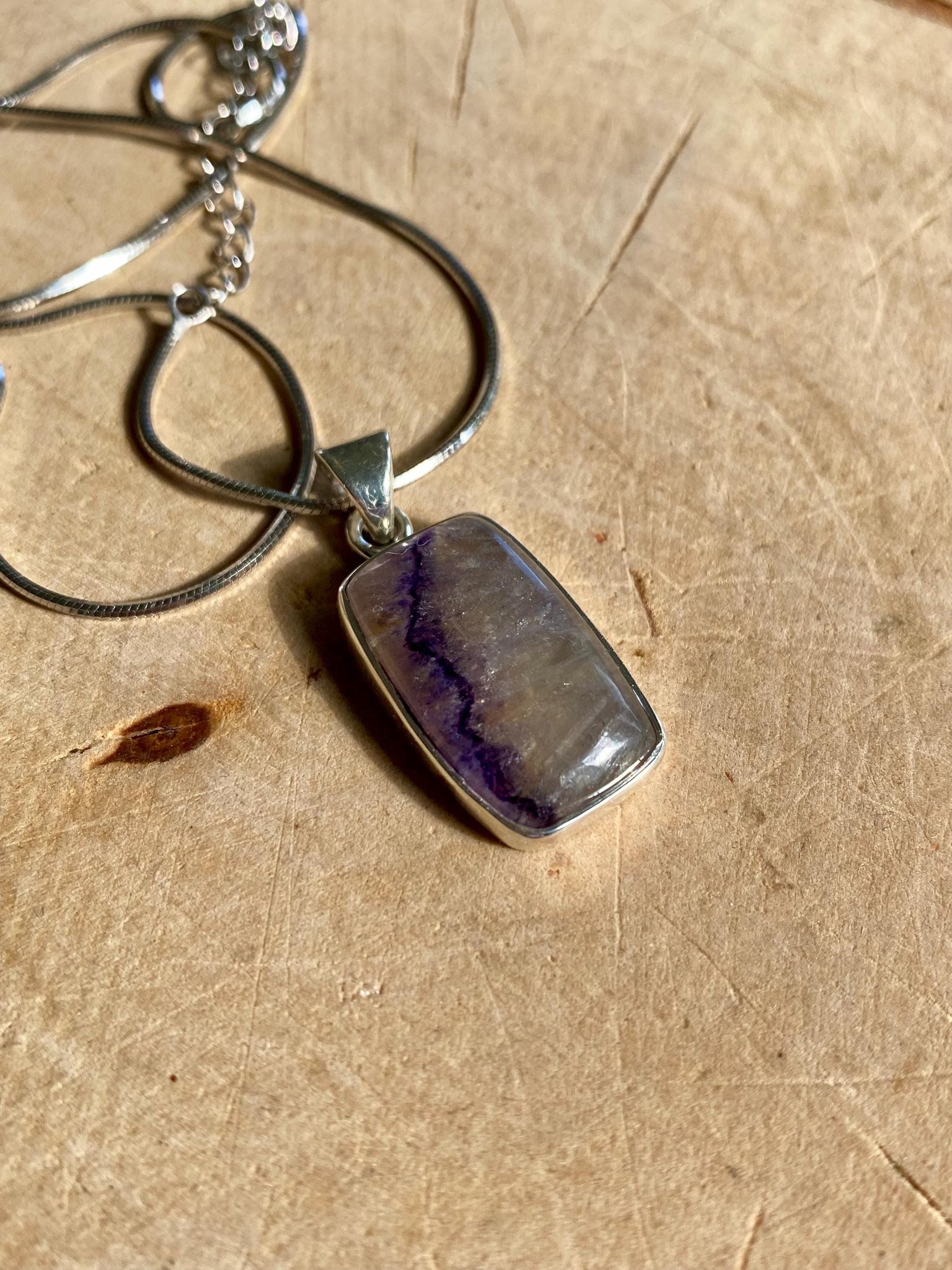 A high quality and extremely rare Blue John (also known as Derbyshire Spar) and 925 silver pendant.