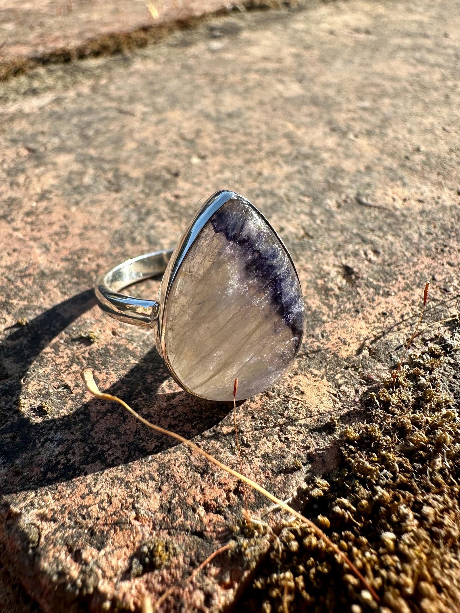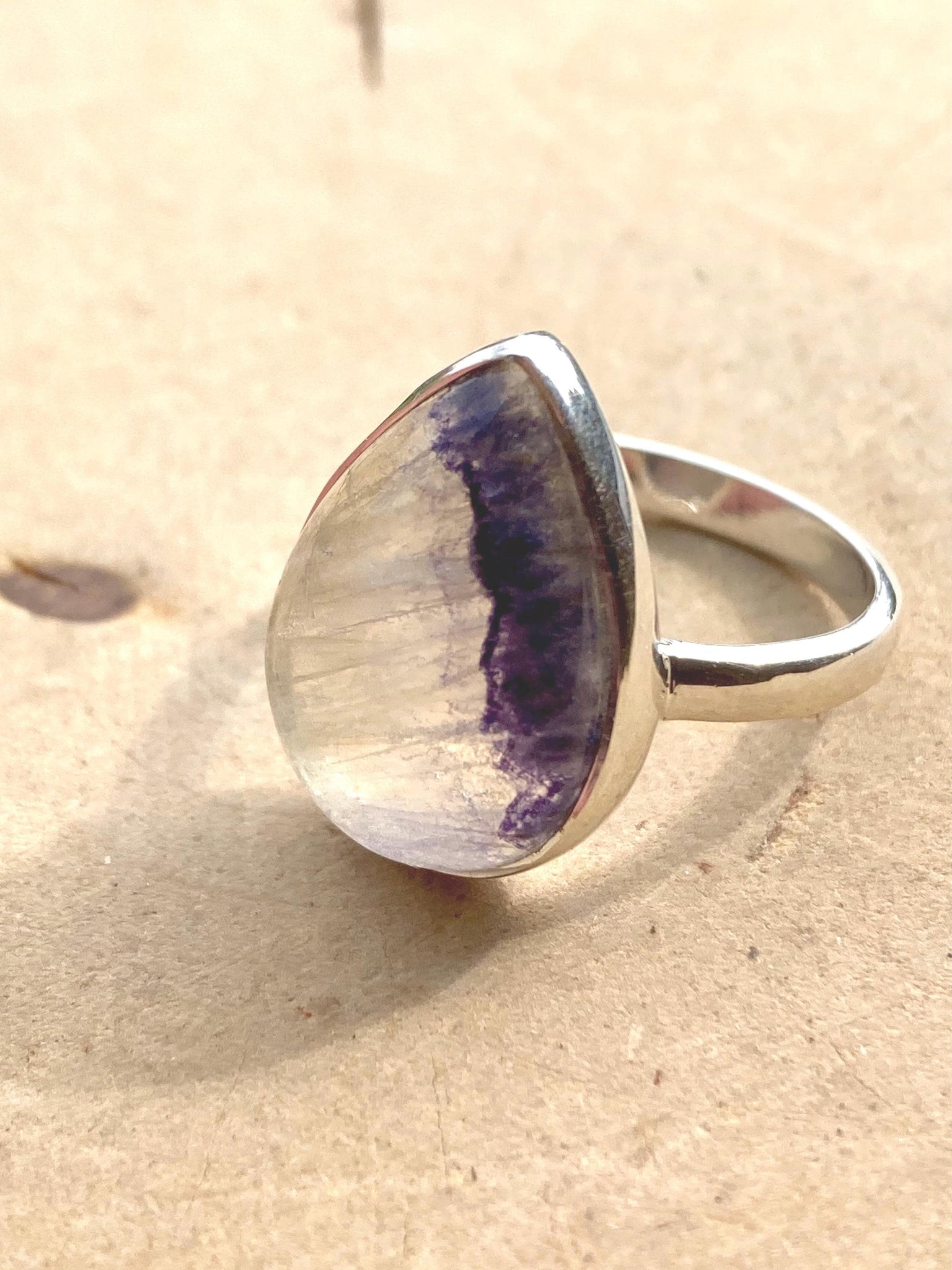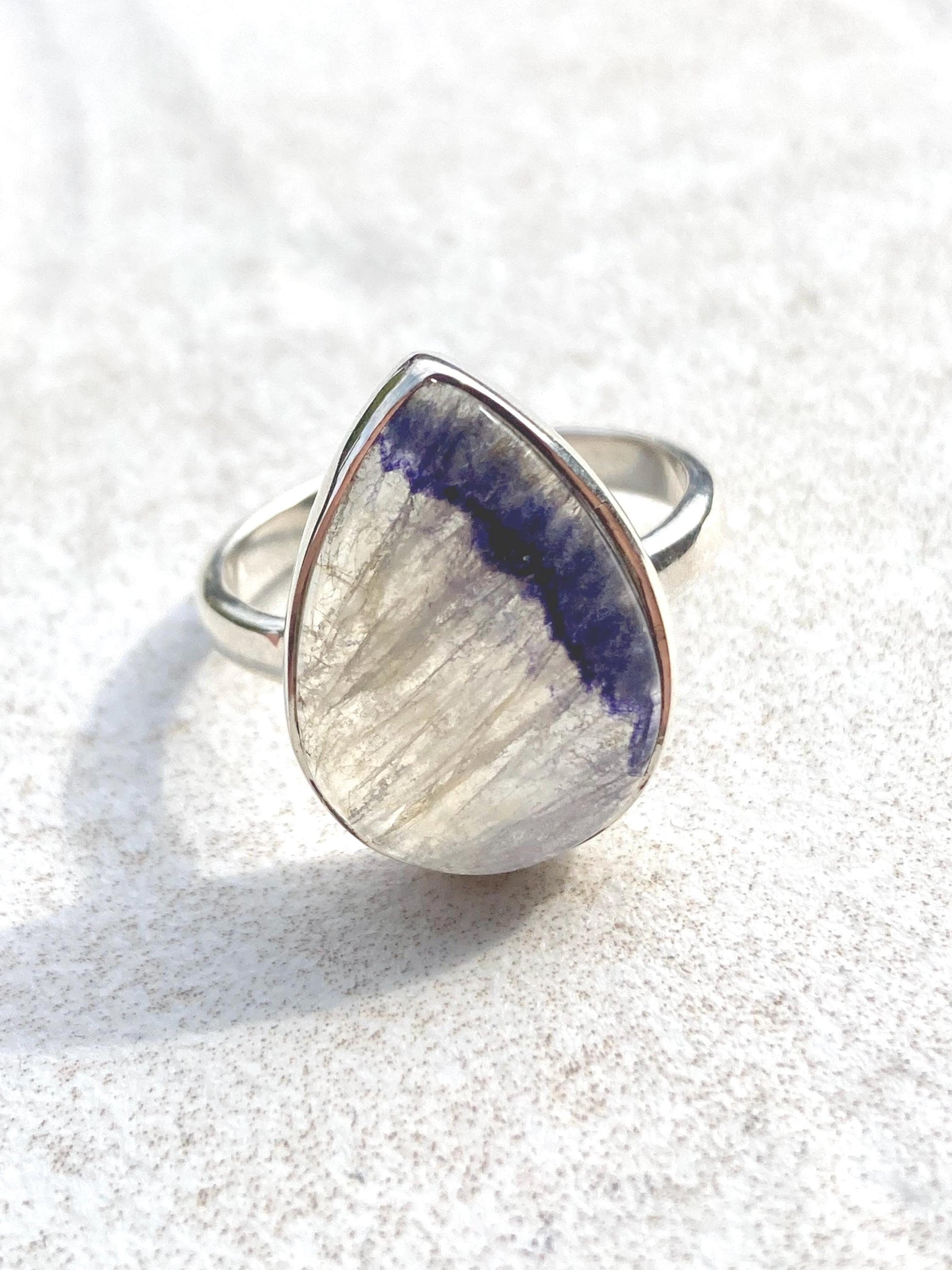 Blue John Teardrop Ring: Sterling Silver, Handmade UK Jewelry