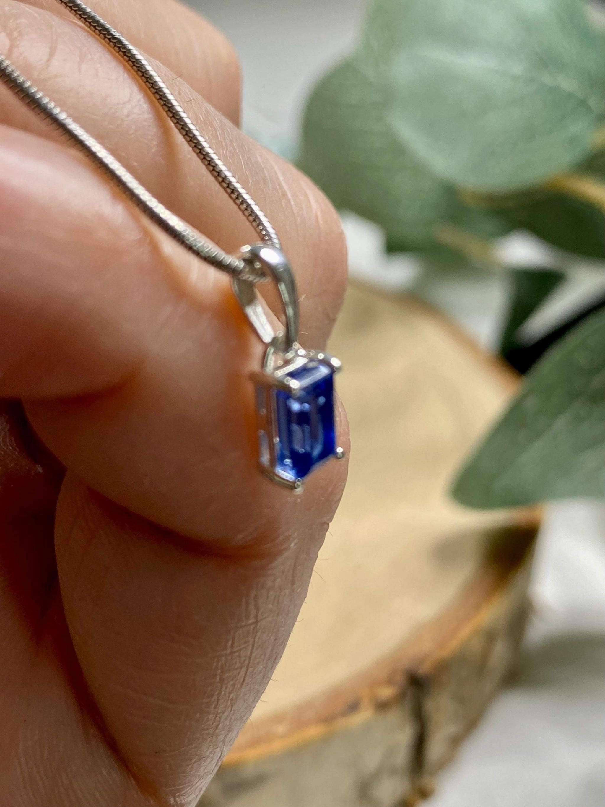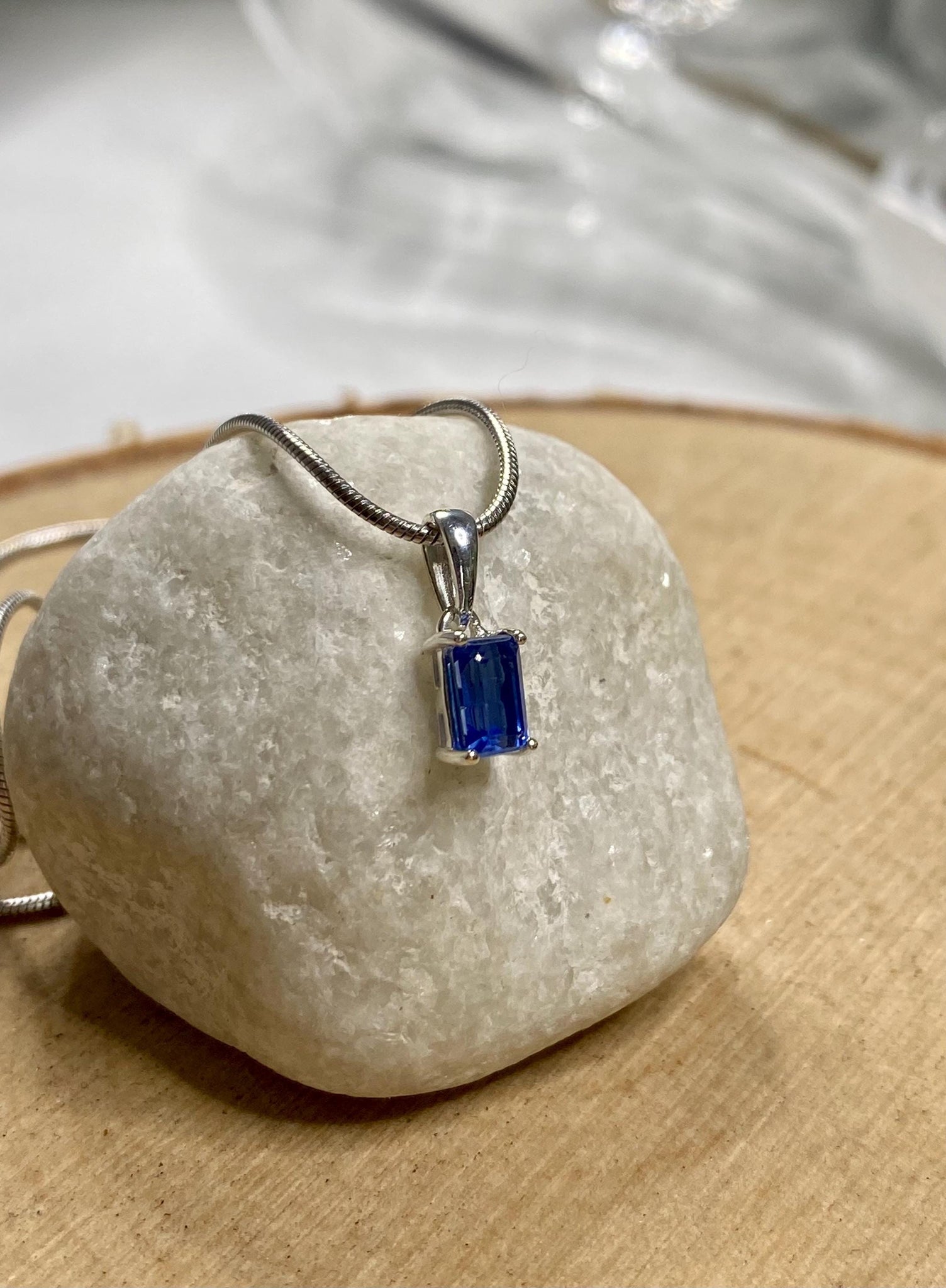 Genuine Brazilian Blue Kyanite gemstone piece set in solid sterling silver 4 prongs. This stone is a great example of fine blue kyanite. A really gorgeous gemstone piece with a slightly pearly lustre.