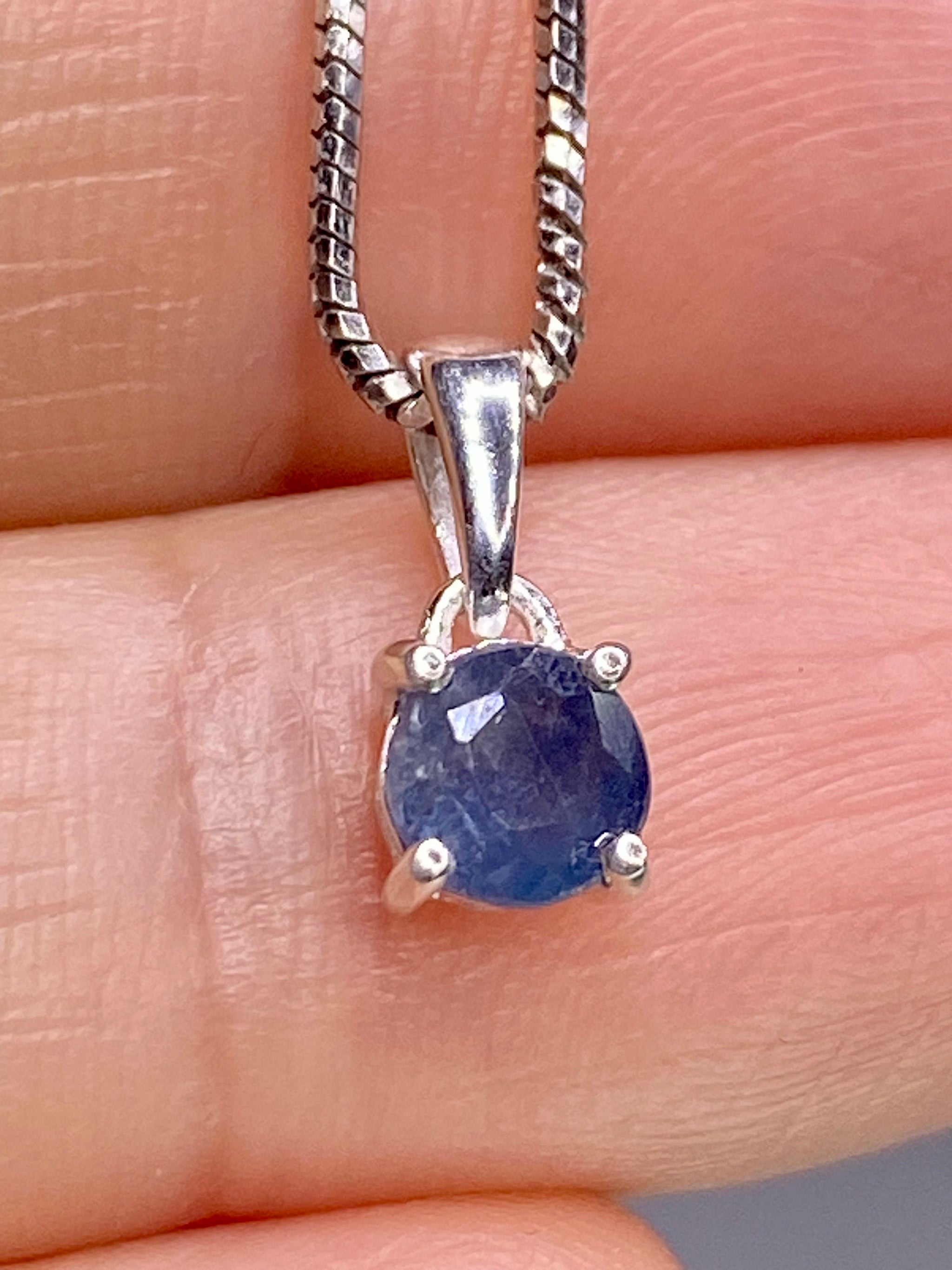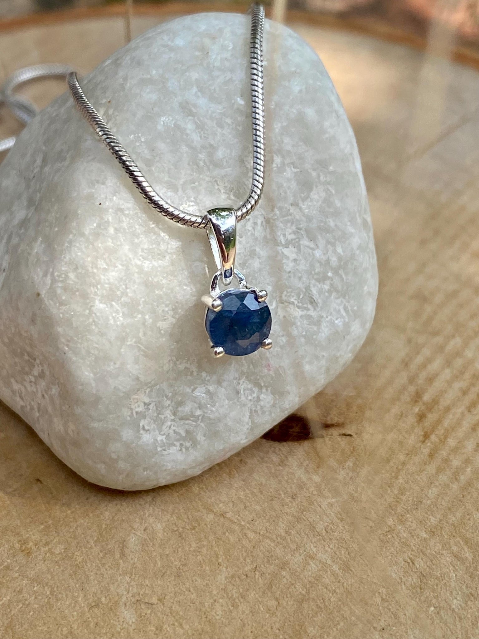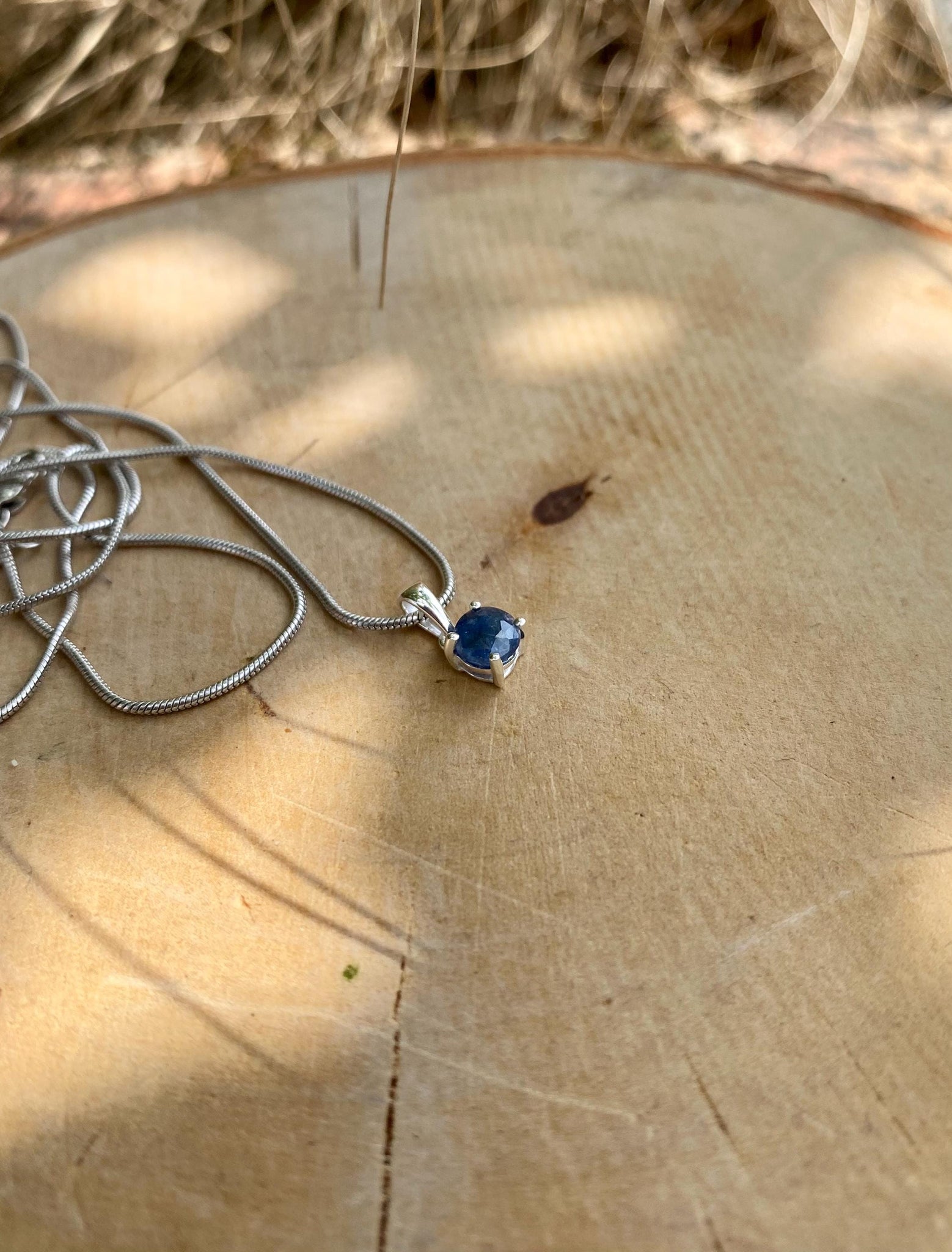 A beautifully sophisticated raw Blue Sapphire and sterling silver pendant.