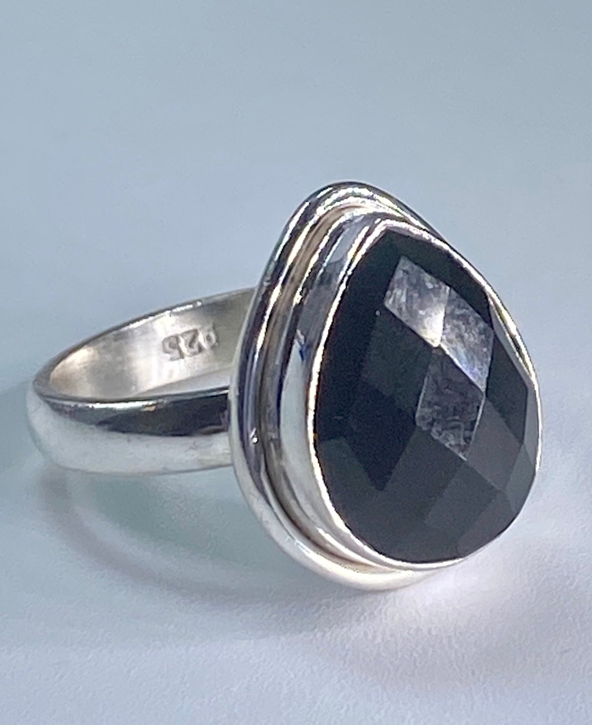 An exceptional handmade classic Black Faceted Tourmaline 925 silver ring.
