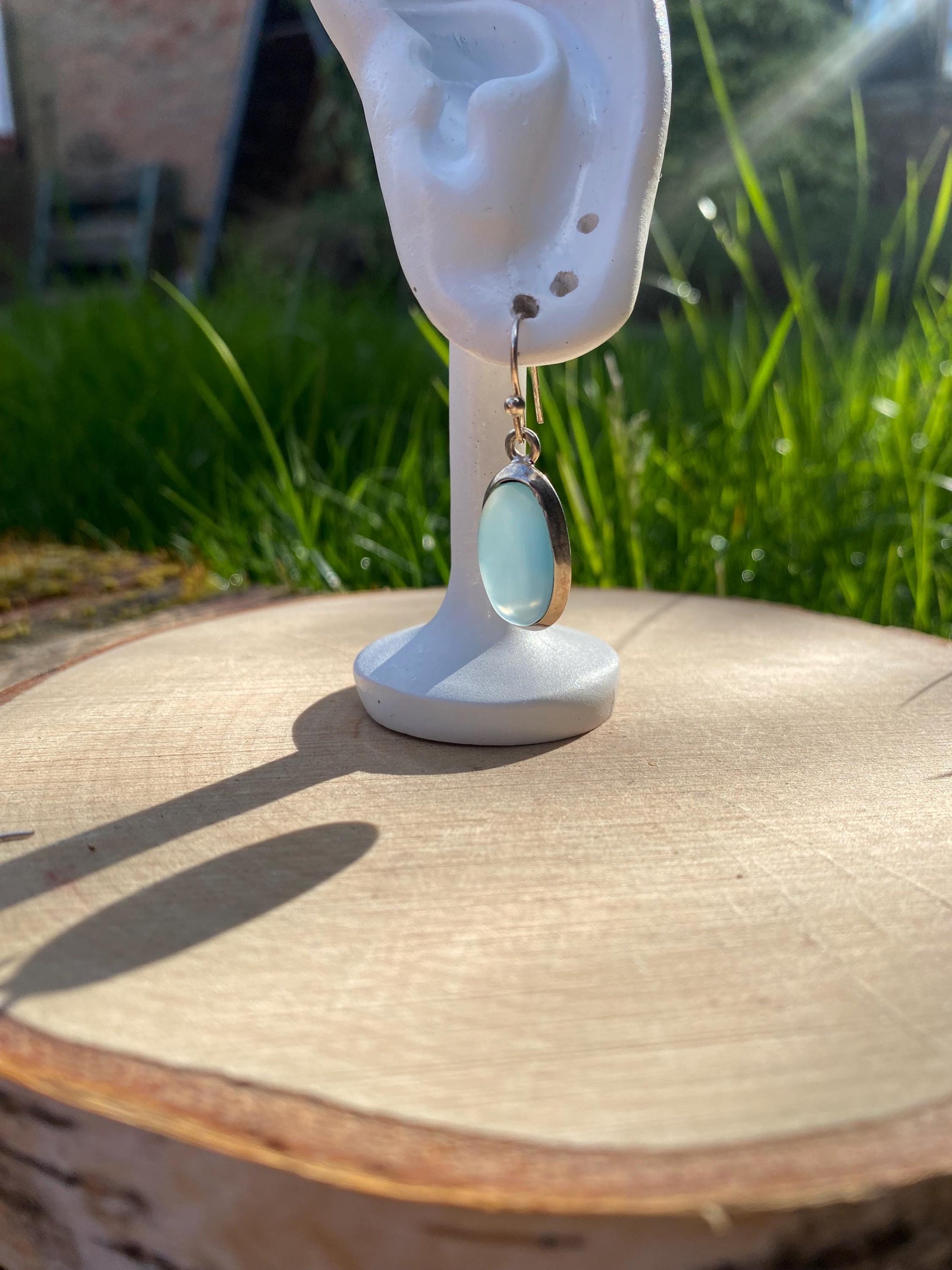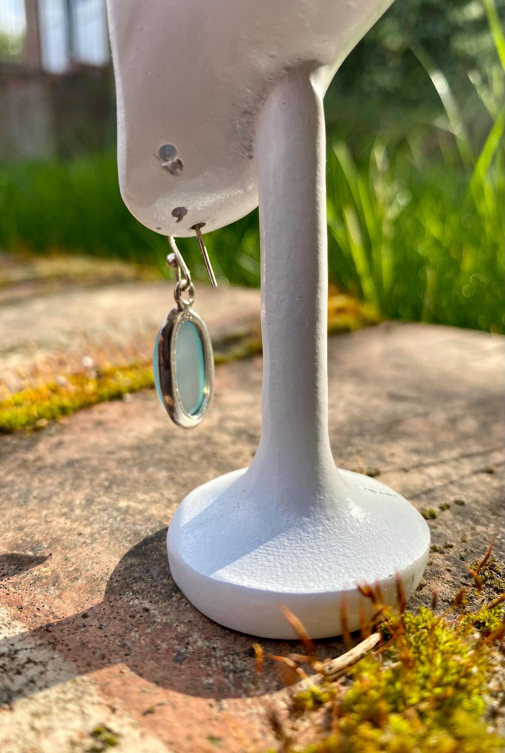 Dainty Aquamarine Dangle Earrings, Oval 19mm x 11mm, Sterling Silver, Handmade UK gift