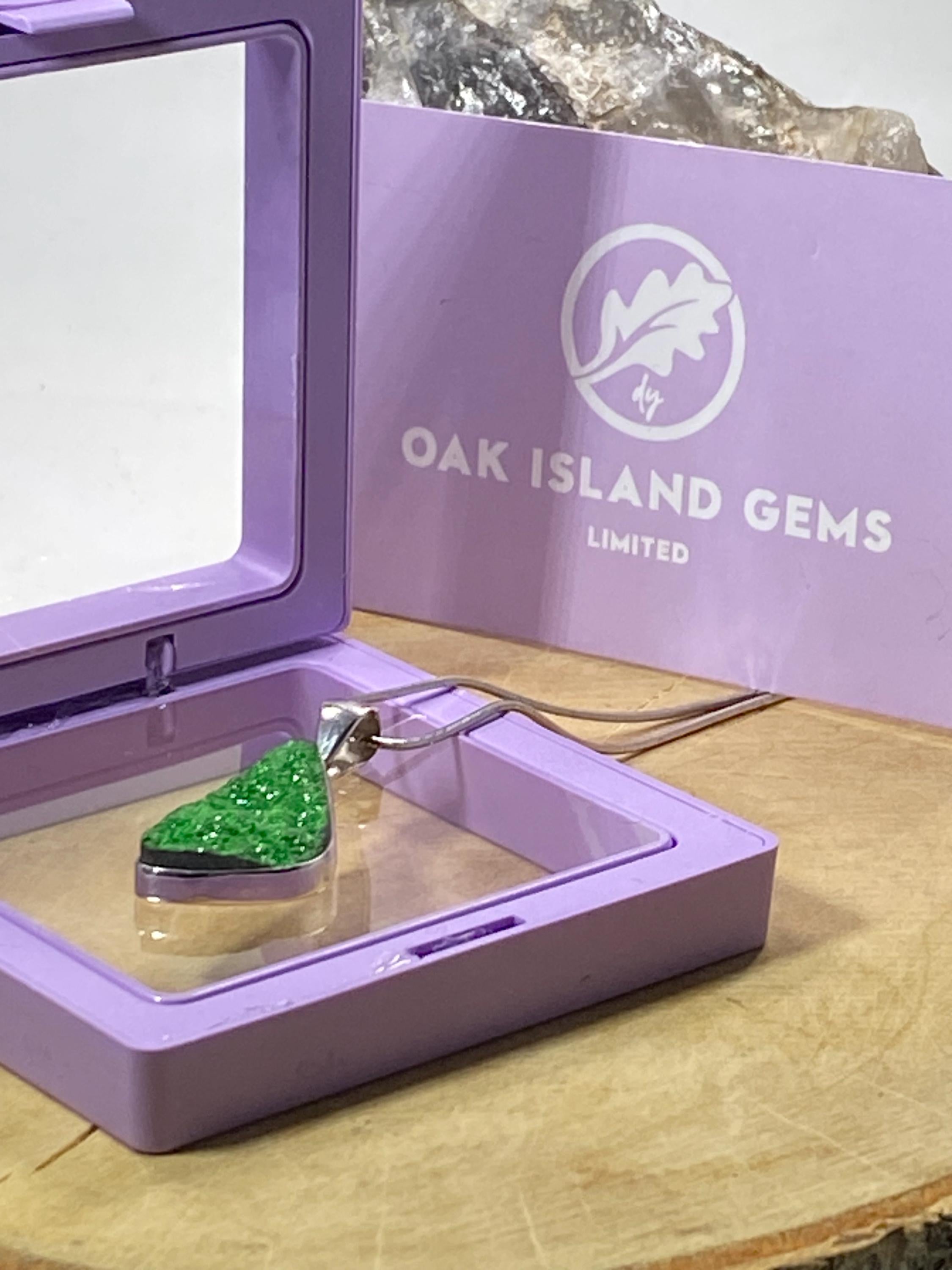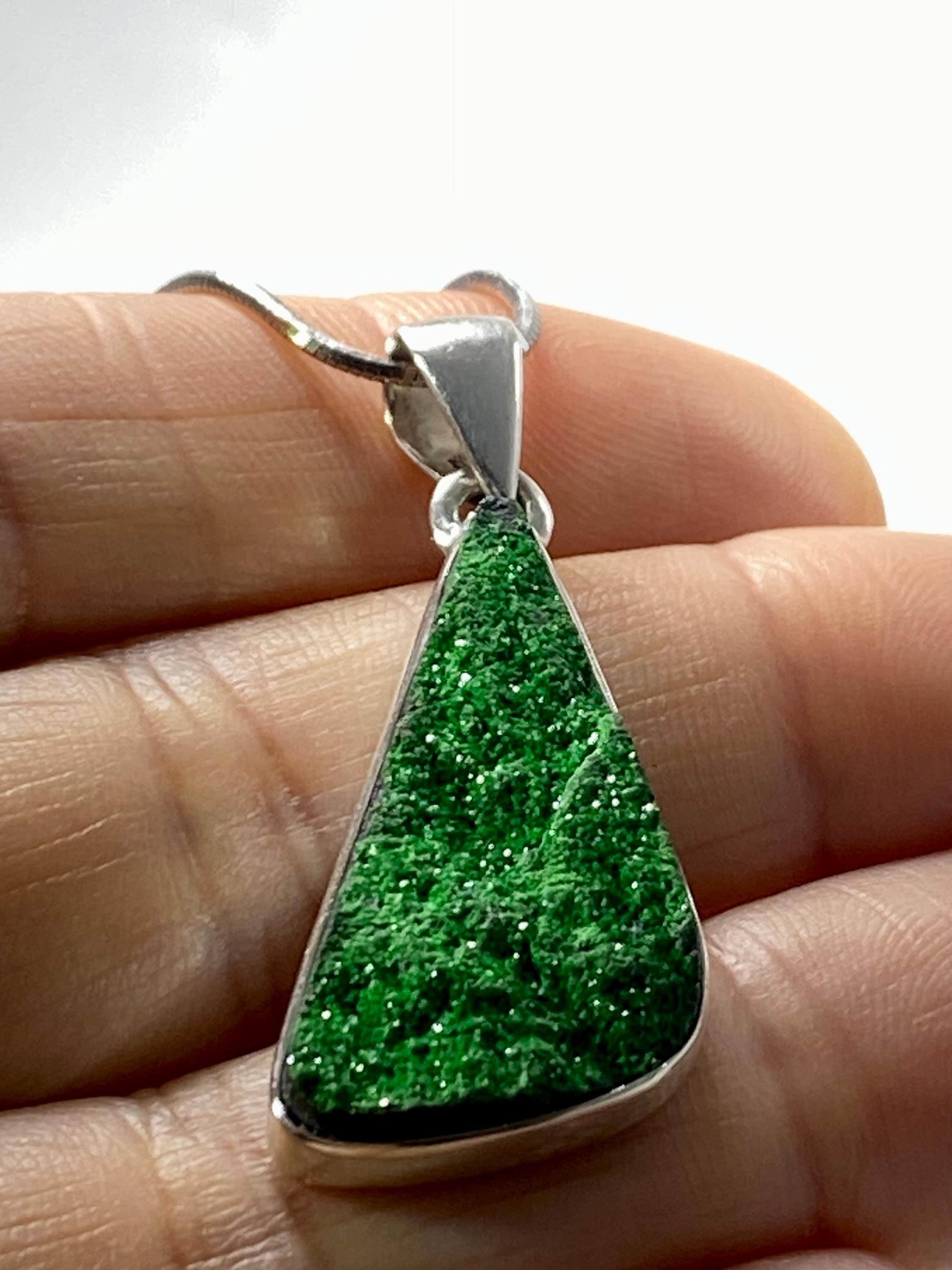 An exquisite and eye-catching natural Rare Green Garnet - Uvarovite and silver pendant.