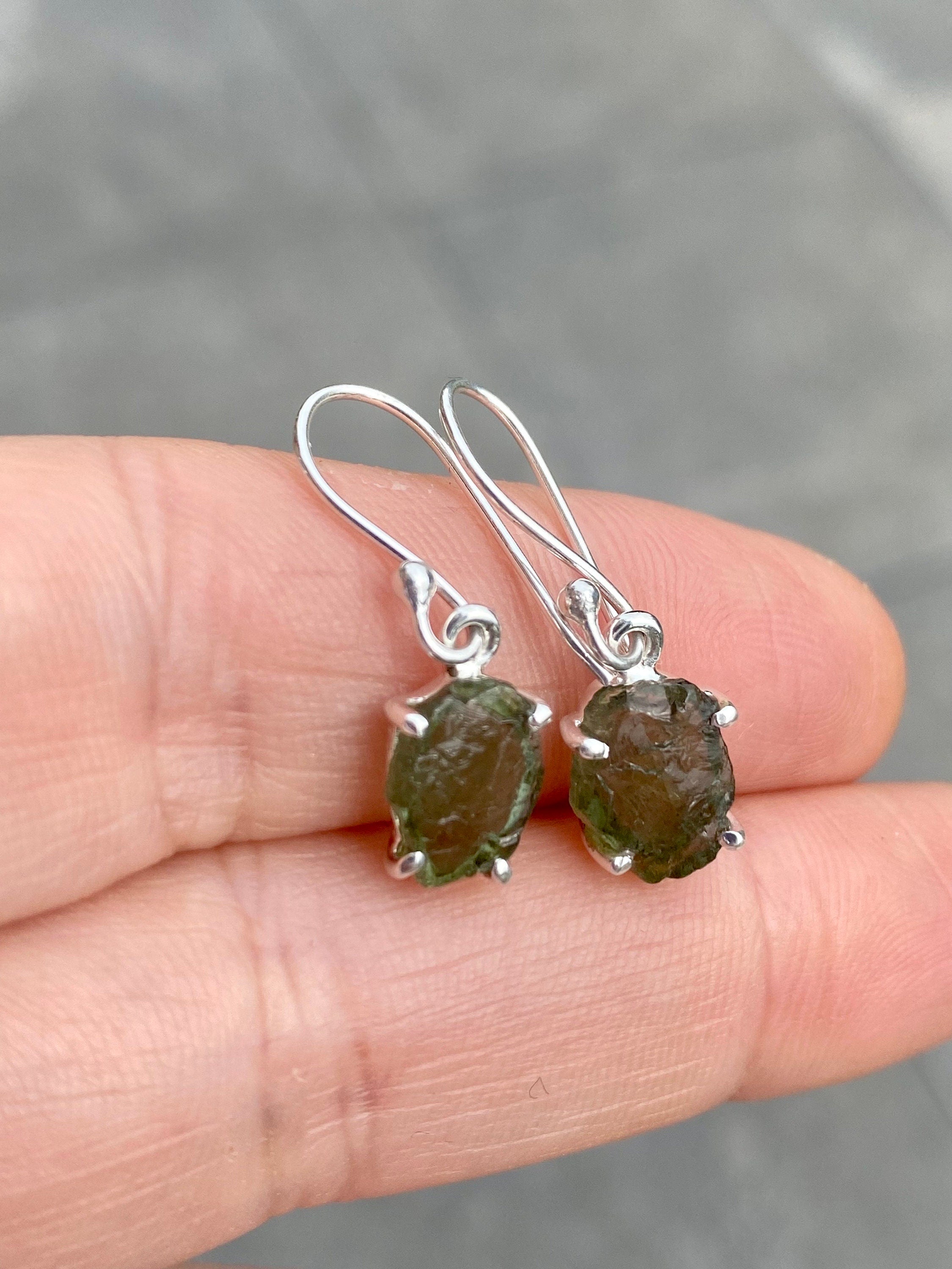 A pair of beautifully refreshing green raw Apatite and 925 silver earrings.