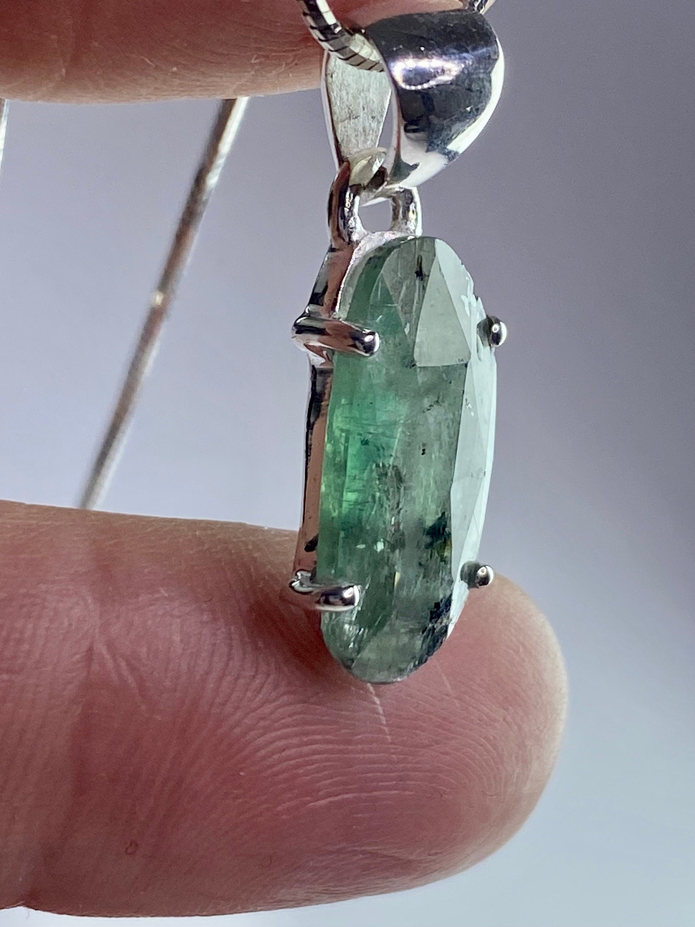 Moss Teal Kyanite and Silver Pendant