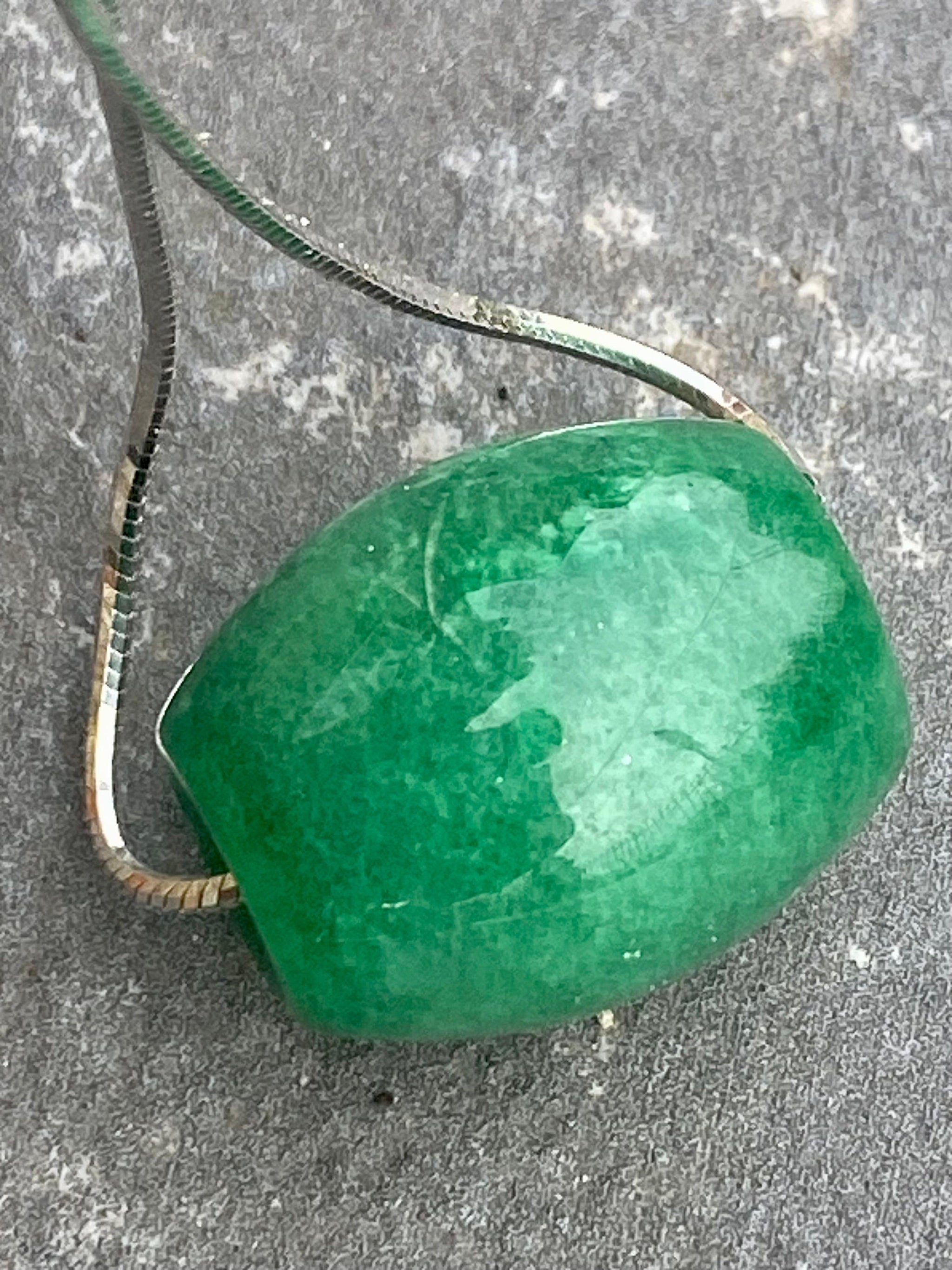 An exceptional Malaysian Green Jade pendant including the contemporary solid silver Italian snake chain.