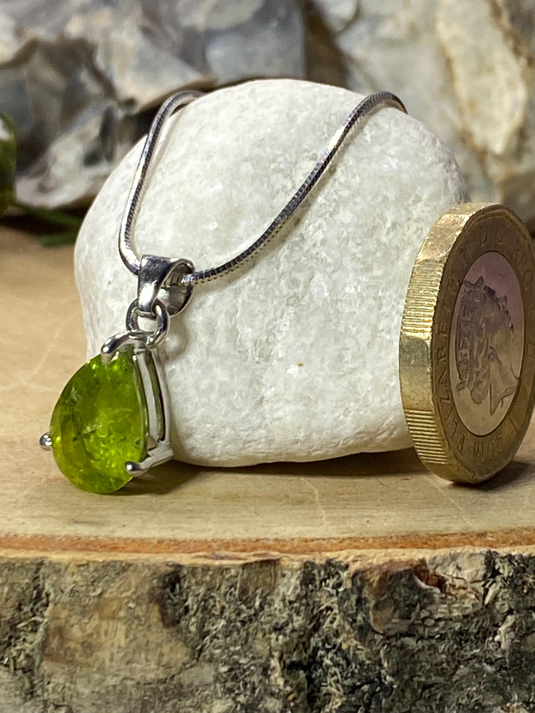 Natural Peridot and Silver Teardop Pendant.