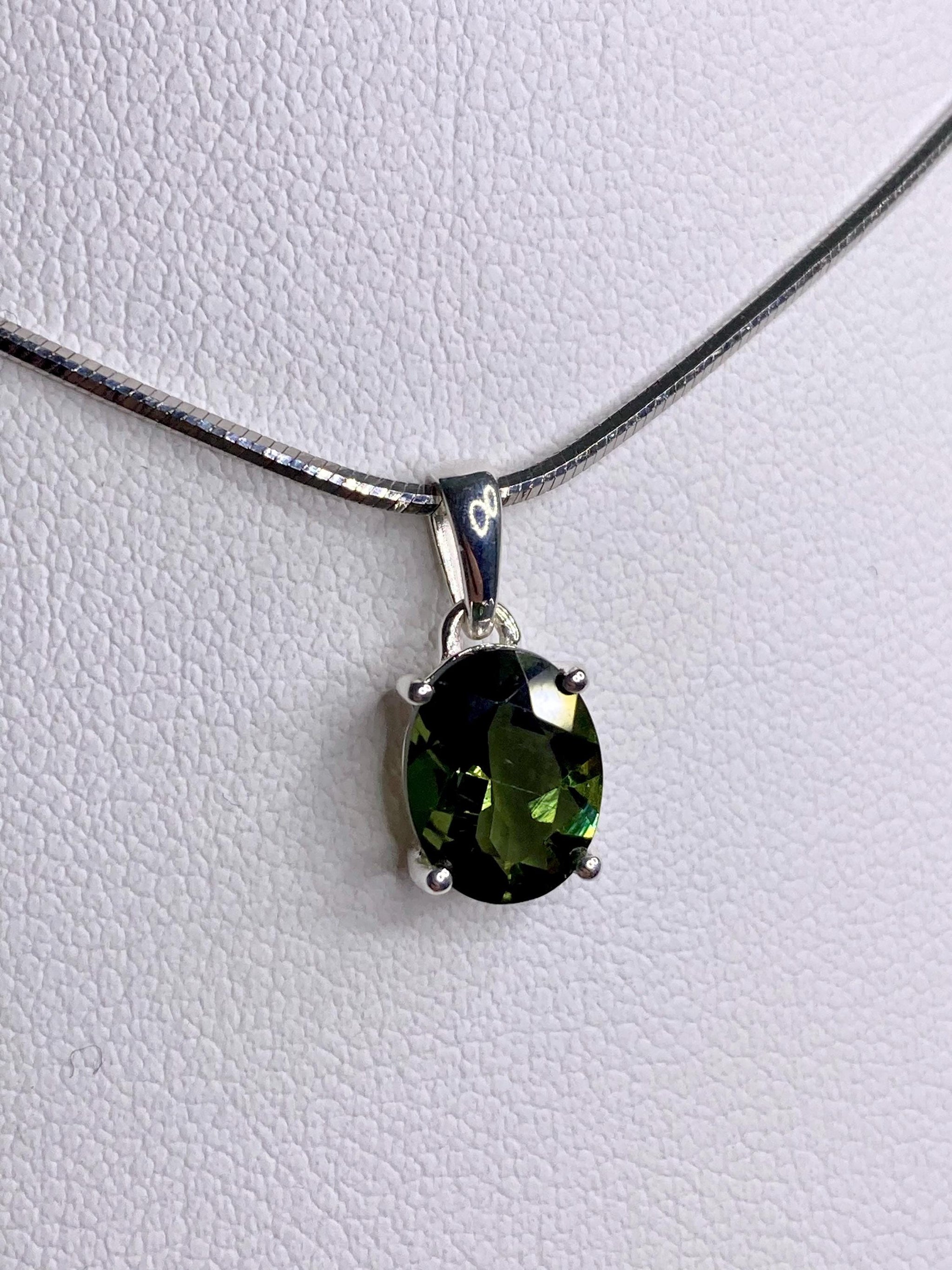 Fine Cut Faceted MOLDAVITE and Sterling Silver Pendant