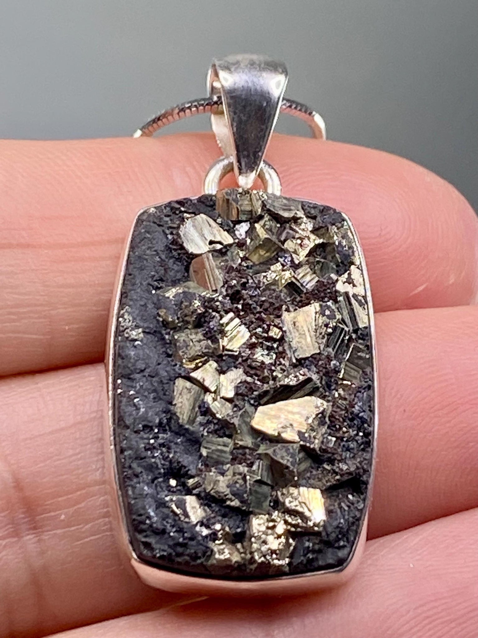 An eye-catching and distinctive Pyrite Drusy and silver pendant.