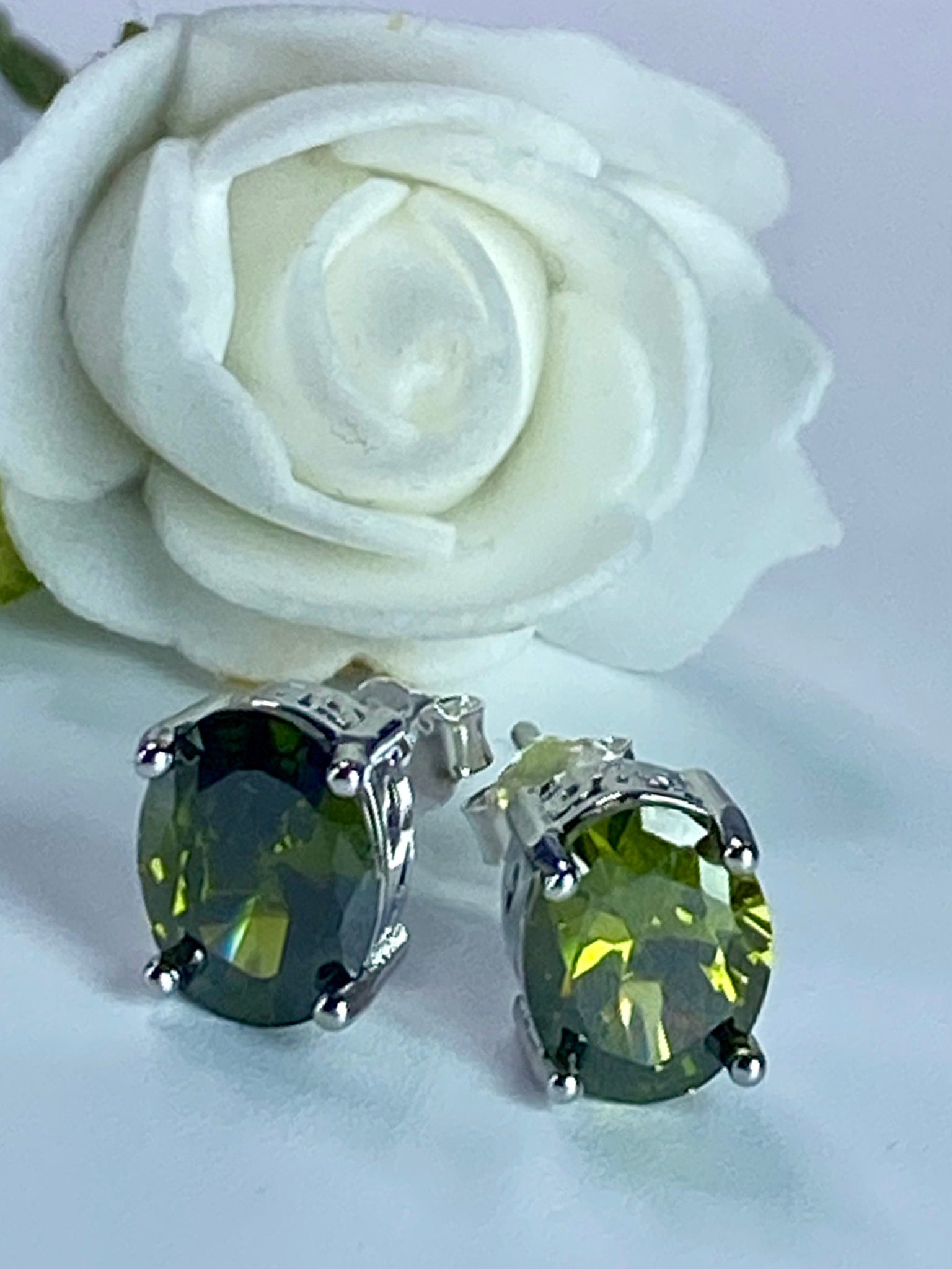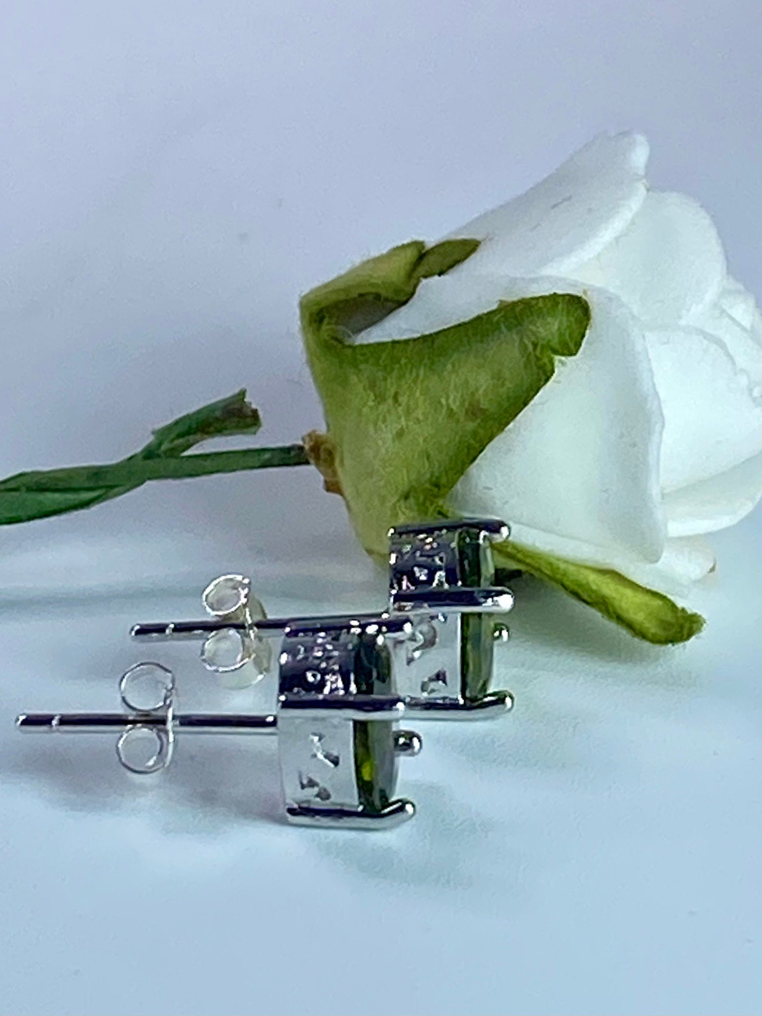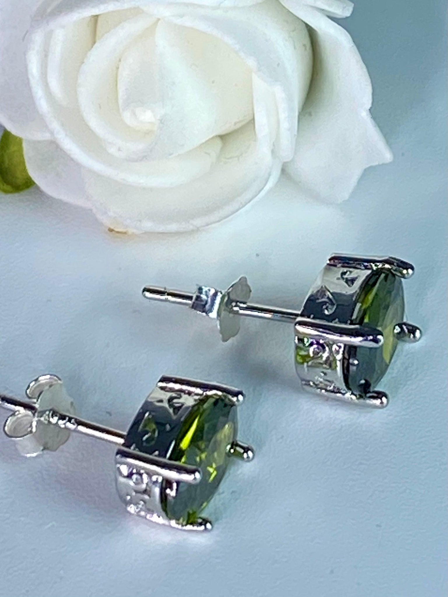 A beautiful and eye-catching pair of Peridot and 925 Sterling silver studs.