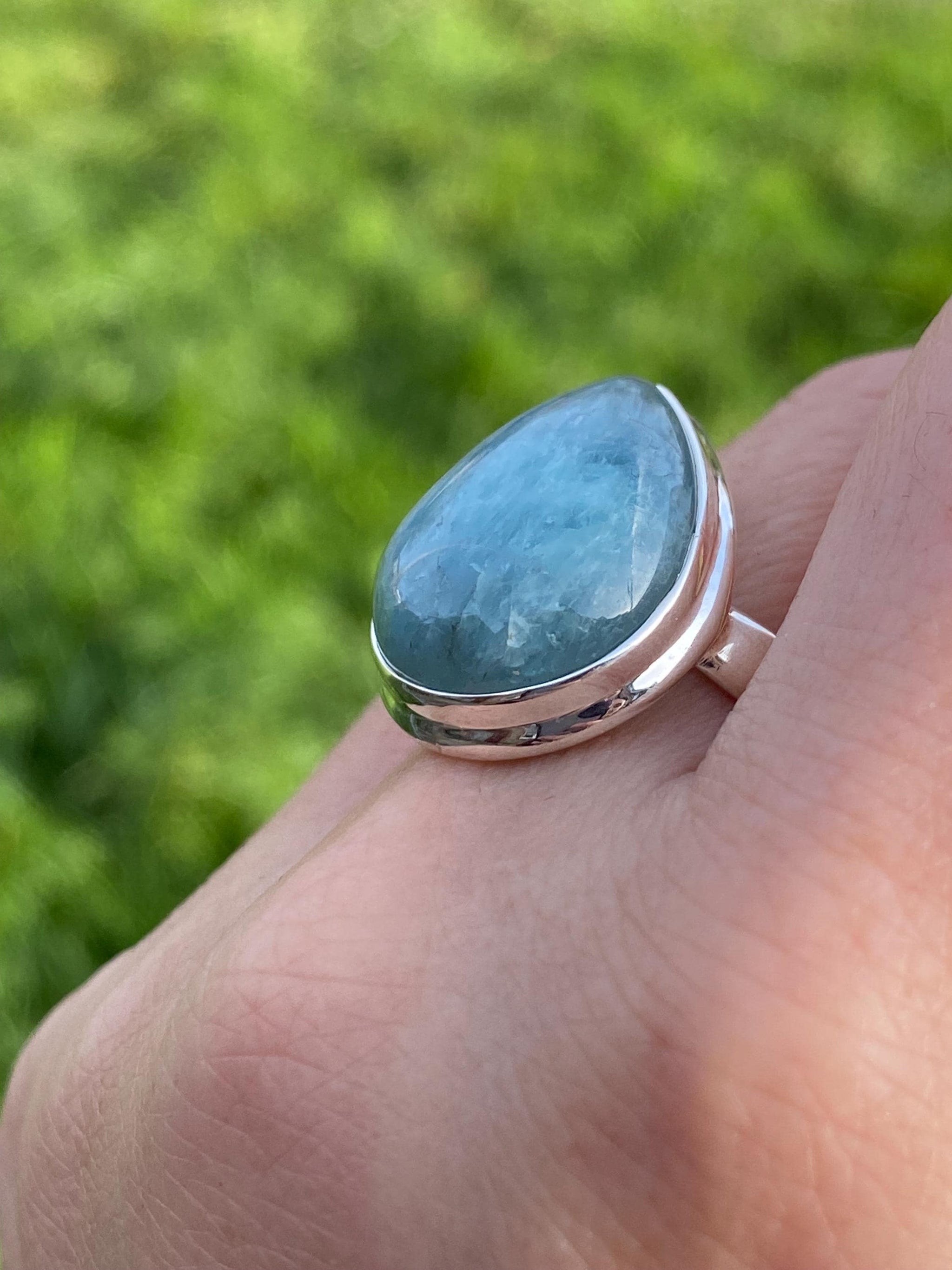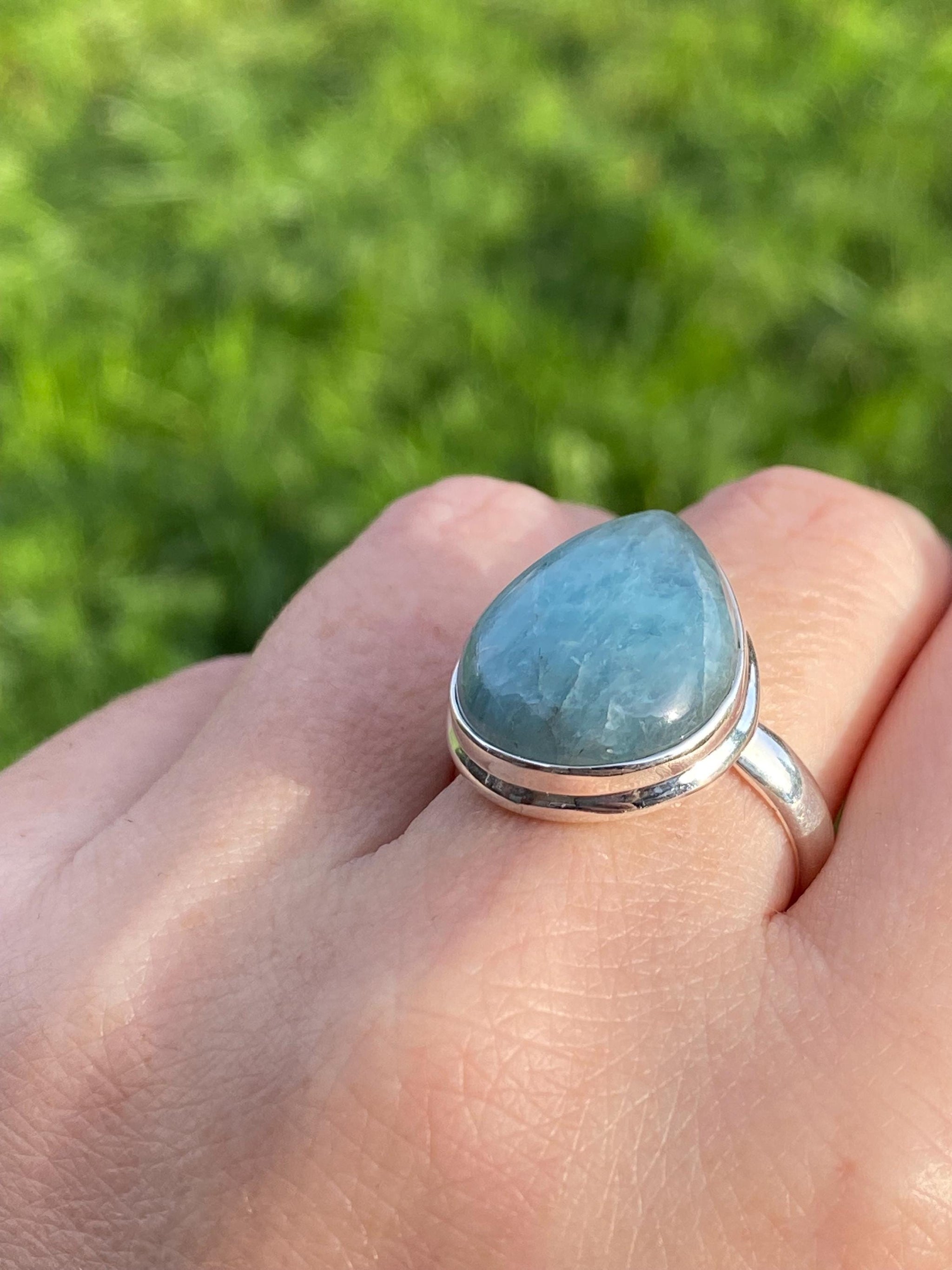 A gorgeous Blue Aquamarine teardrop shape 925 silver ring.