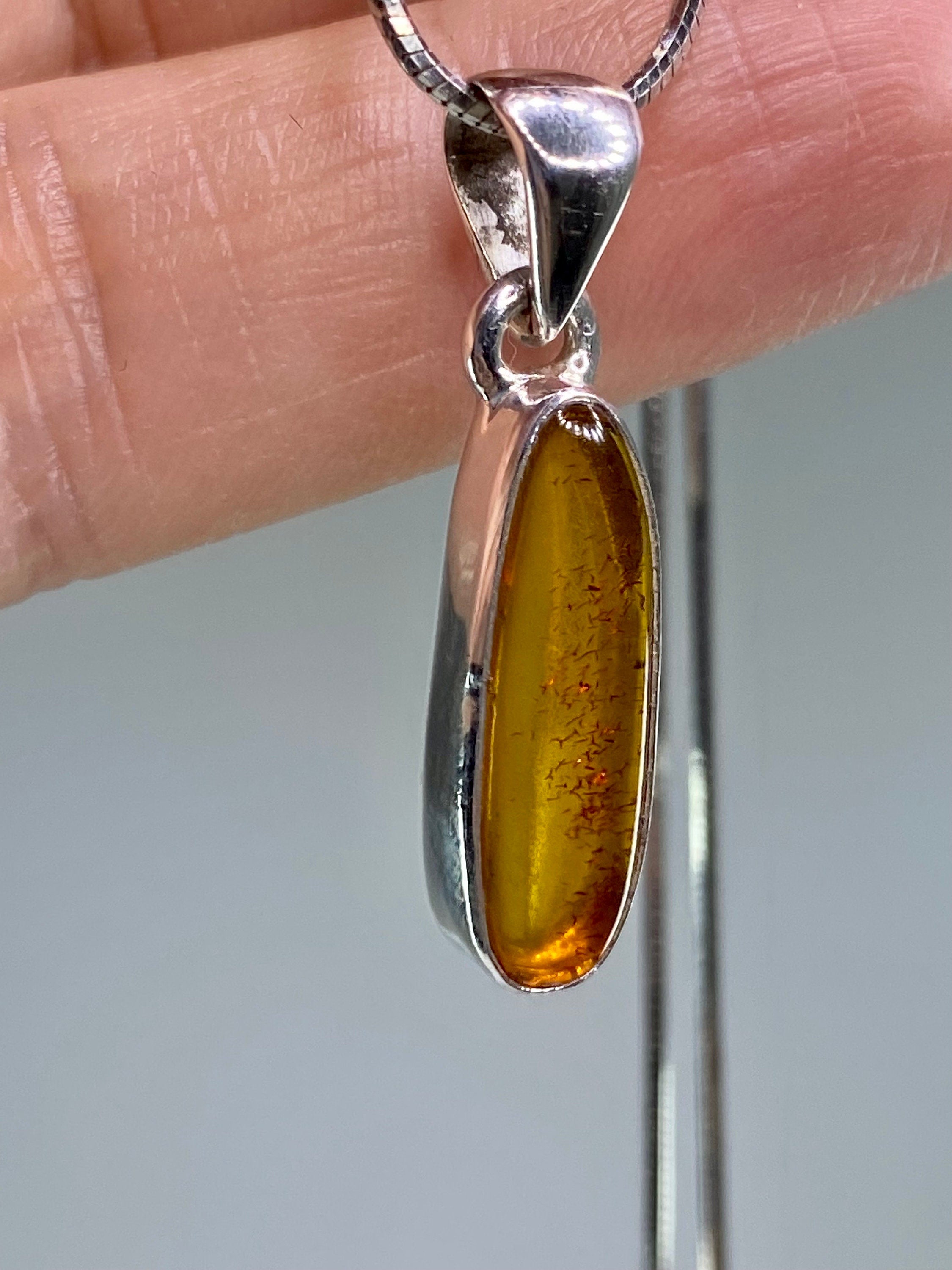 A Baltic Amber elegant pendant set in 925 sterling silver bezel.