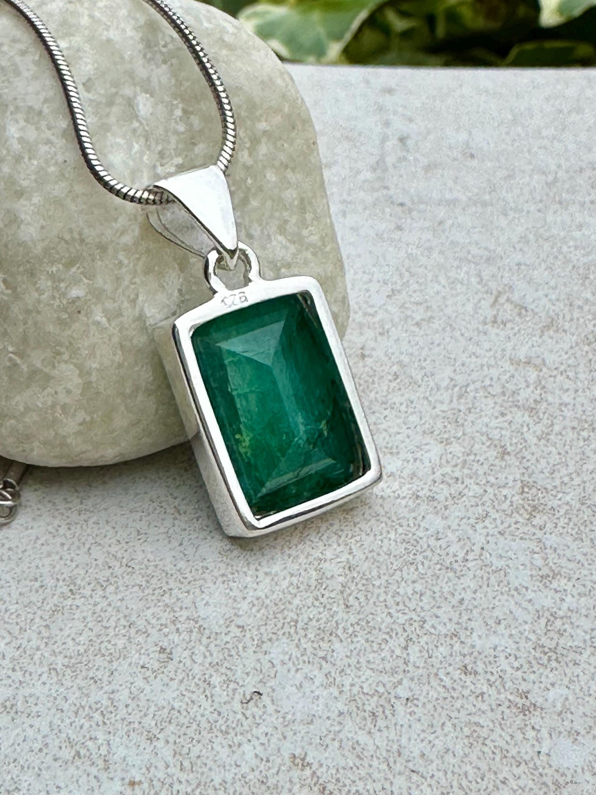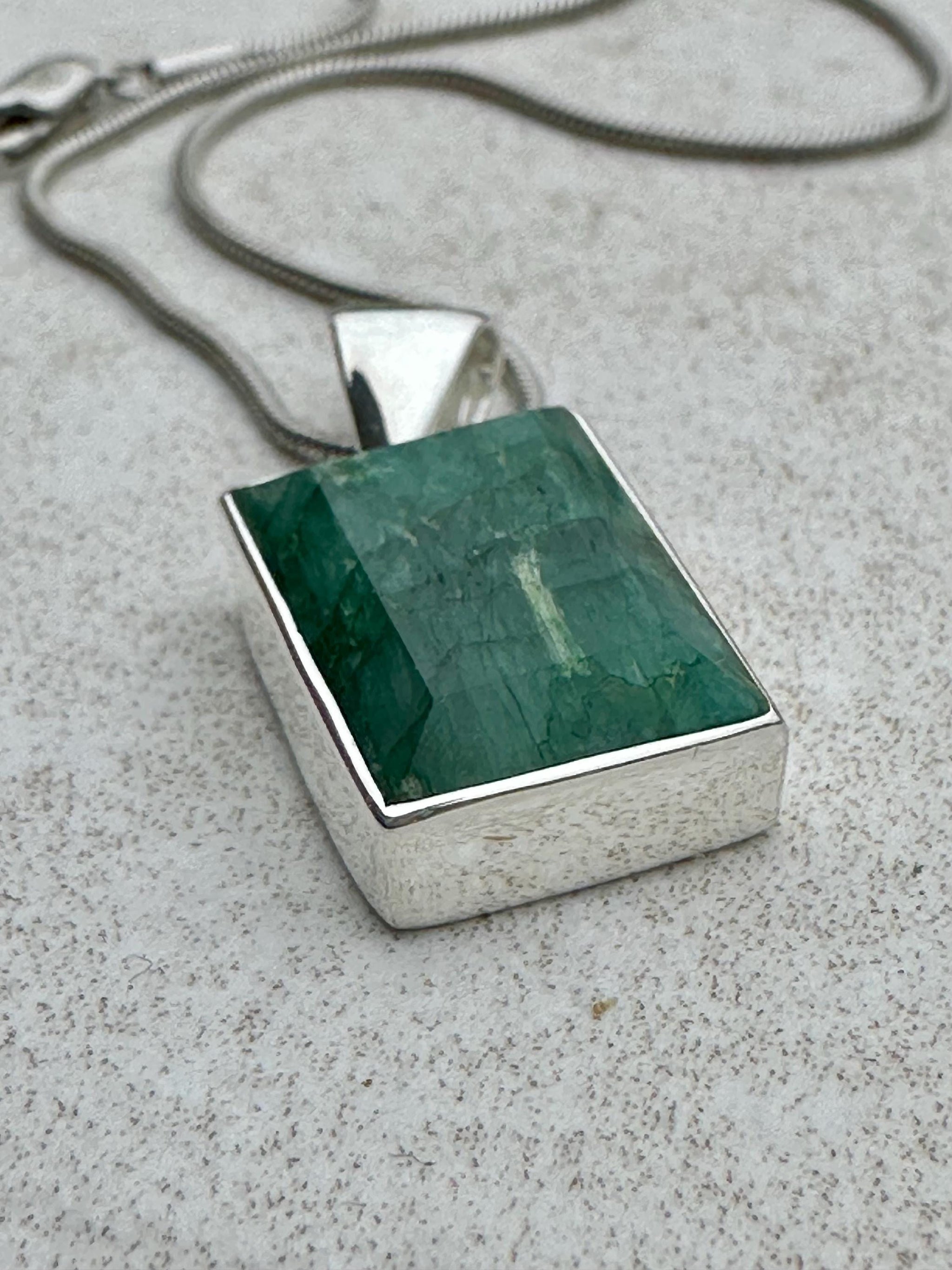 An elegantly sophisticated Raw Green Emerald and Sterling silver pendant.
