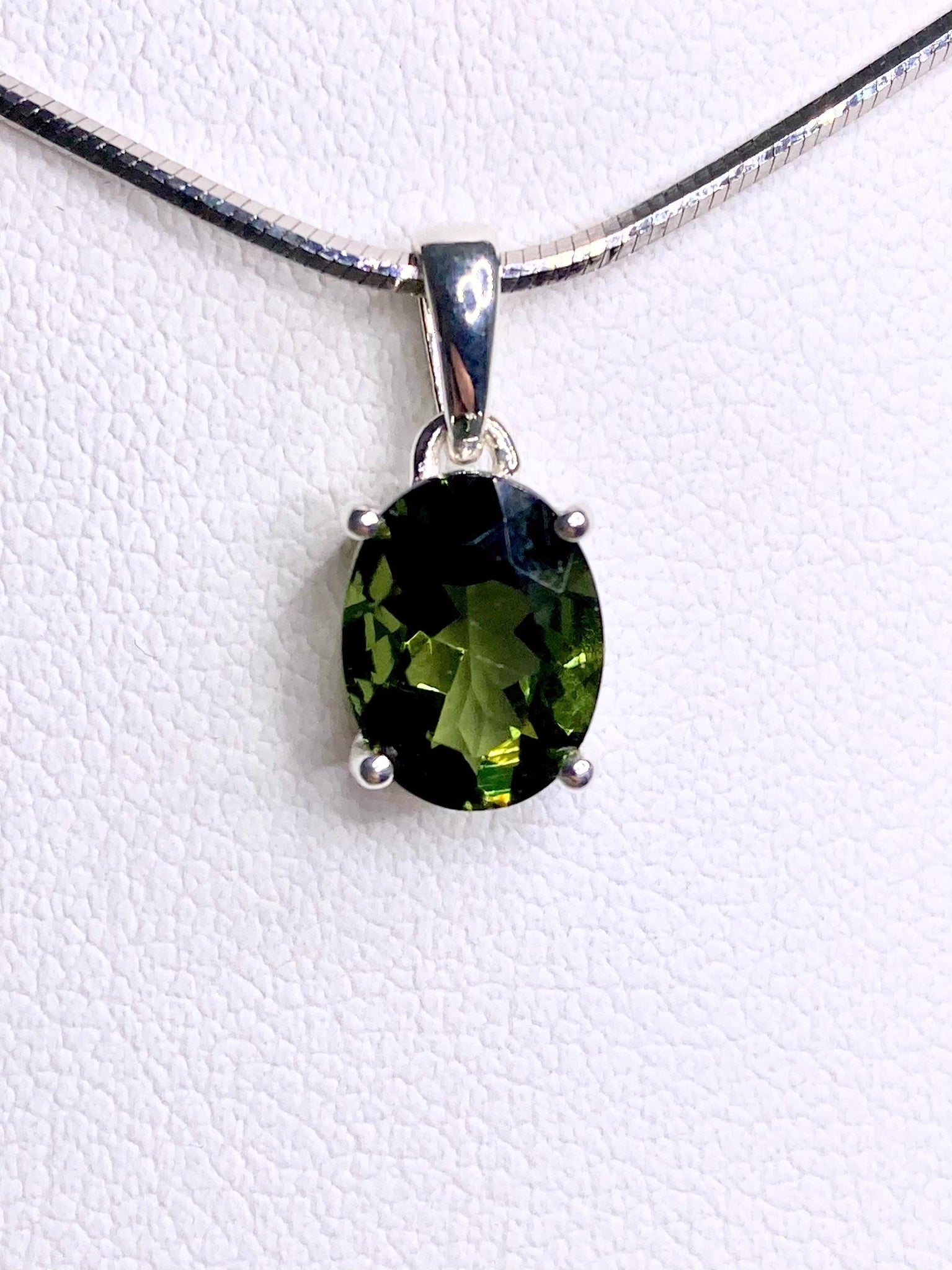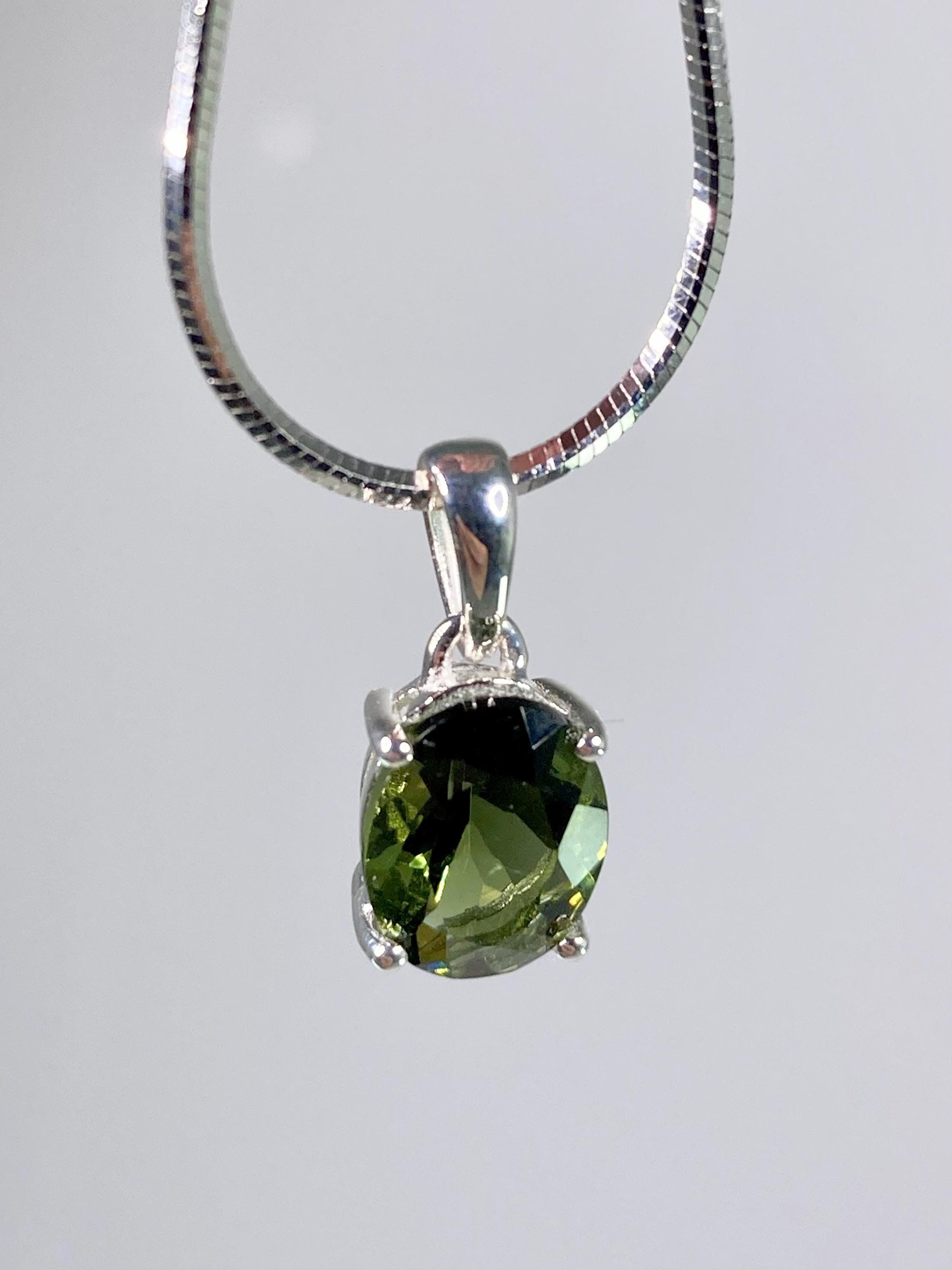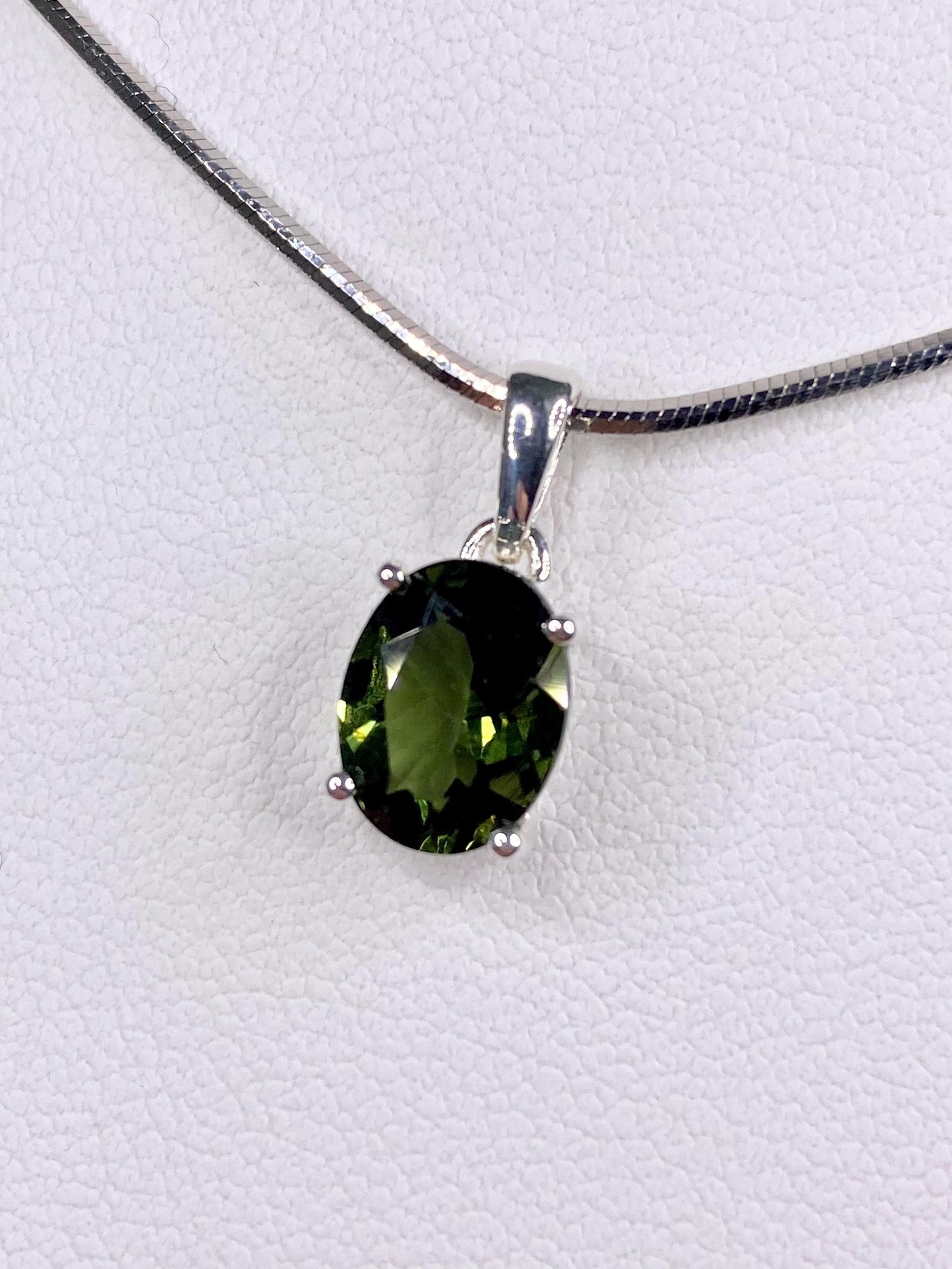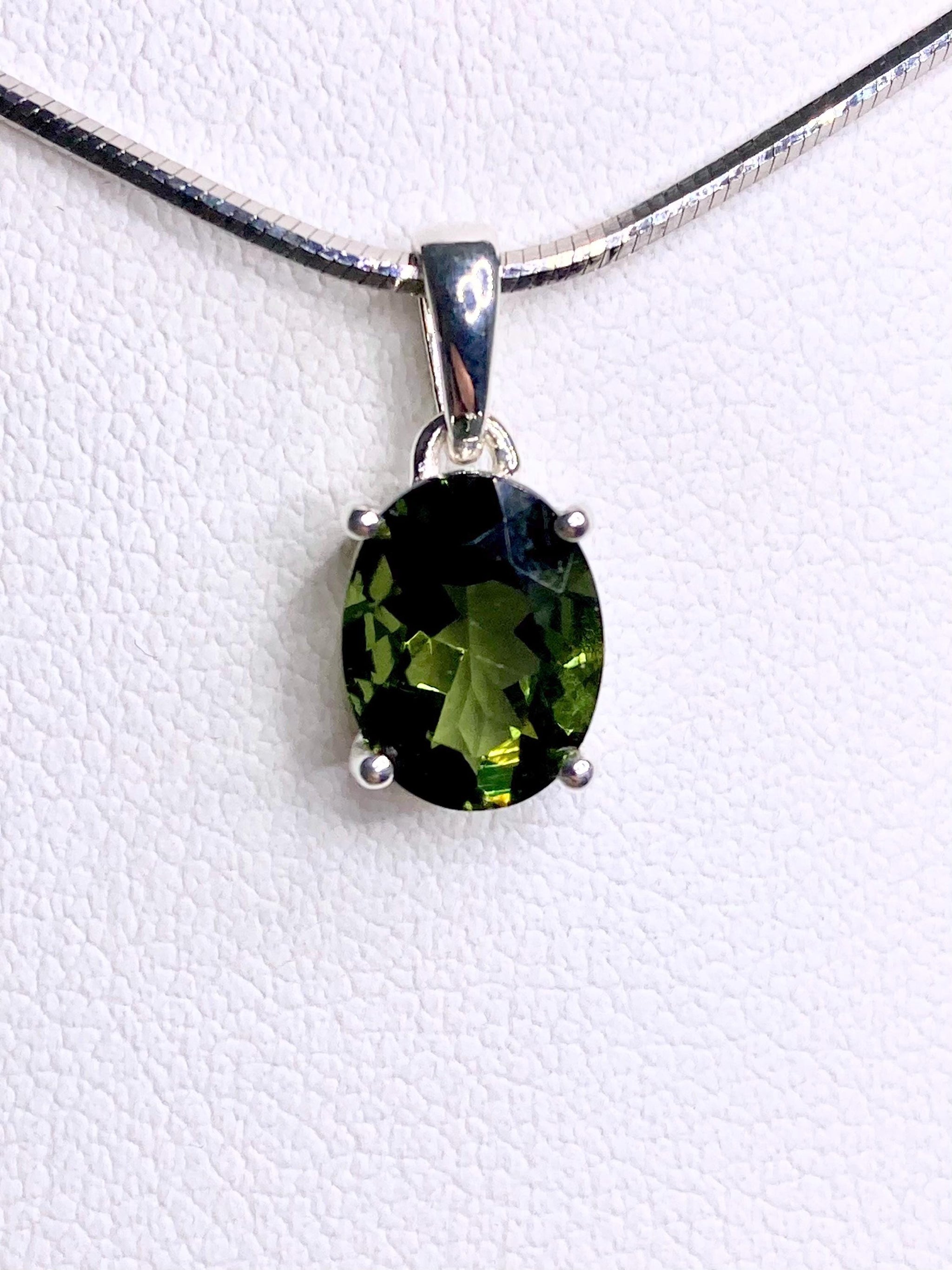 Fine Cut Faceted MOLDAVITE and Sterling Silver Pendant