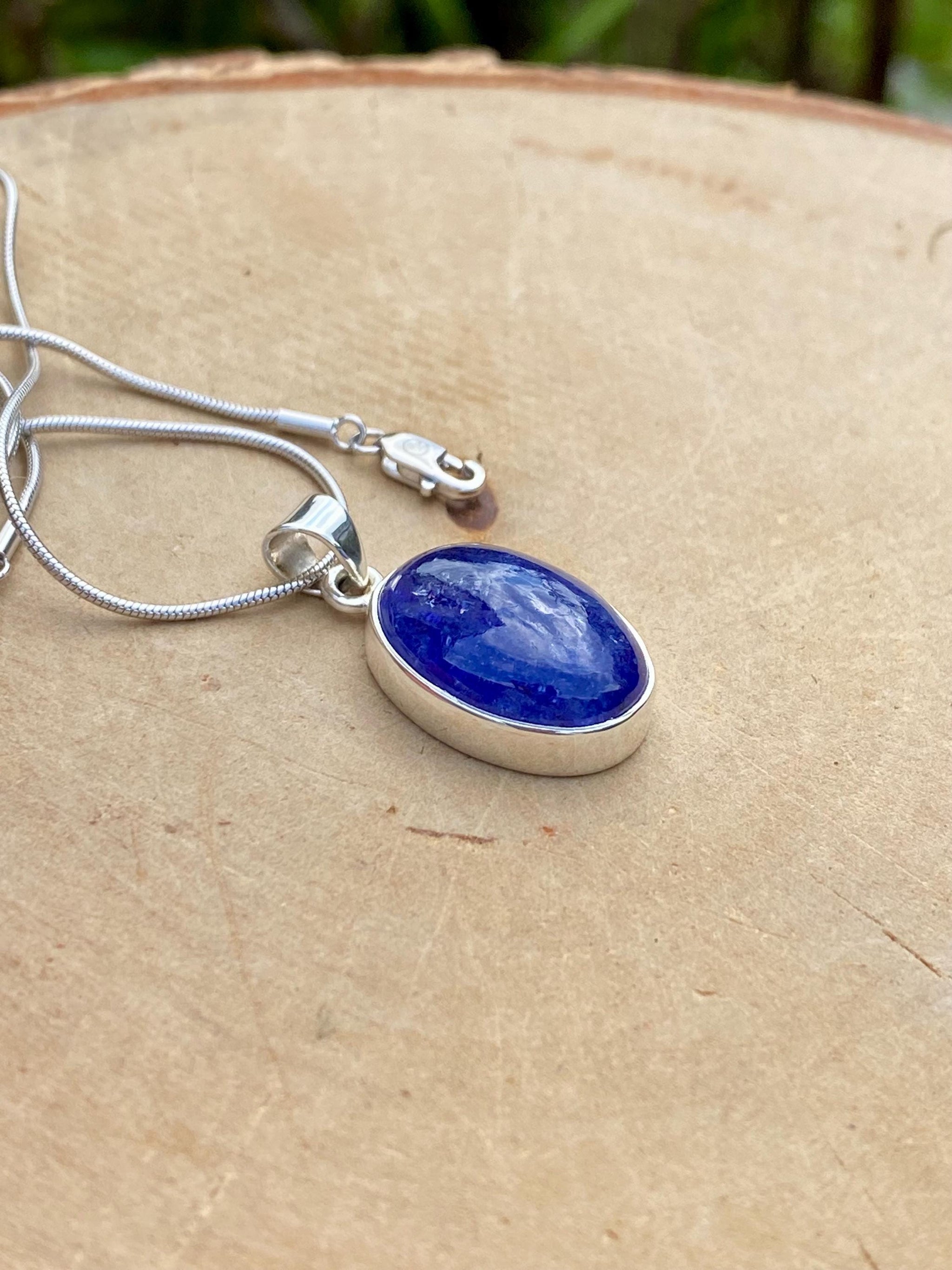 A high quality genuine Tanzanite pendant 925 Sterling silver pendant, oval-cut and set in the classic bezel.
