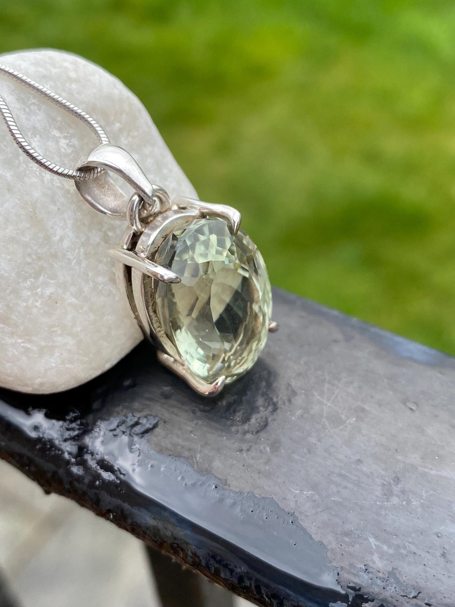 An elegant and sophisticated Green Amethyst (Prasiolite) 925 Sterling silver pendant.