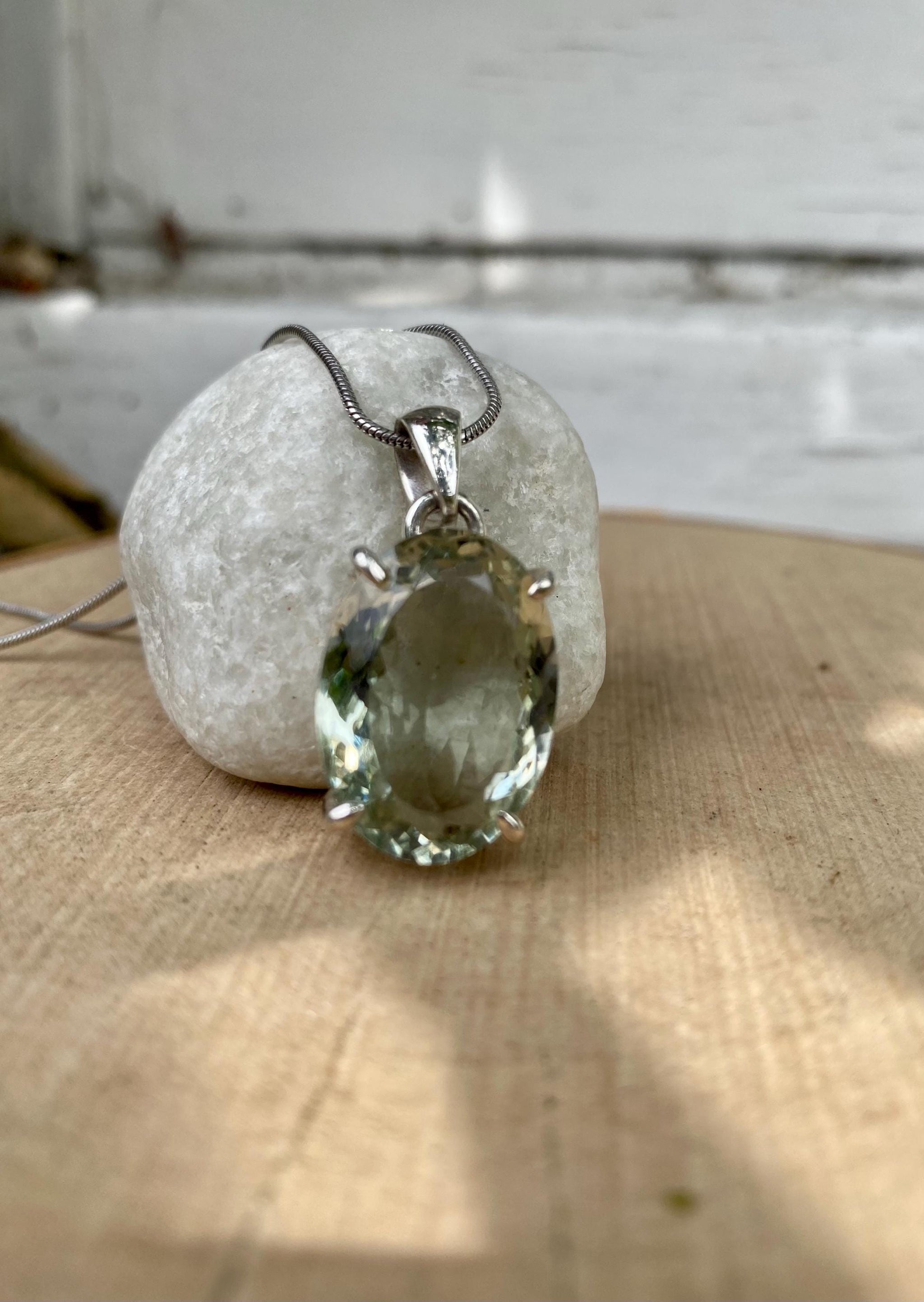 An elegant and sophisticated Green Amethyst (Prasiolite) Sterling silver pendant.