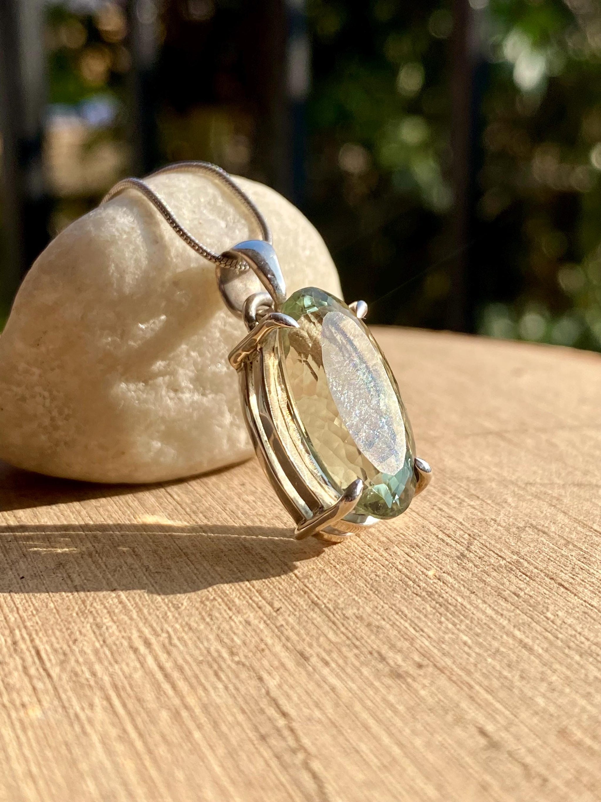 An elegant and sophisticated Green Amethyst (Prasiolite) Sterling silver pendant.