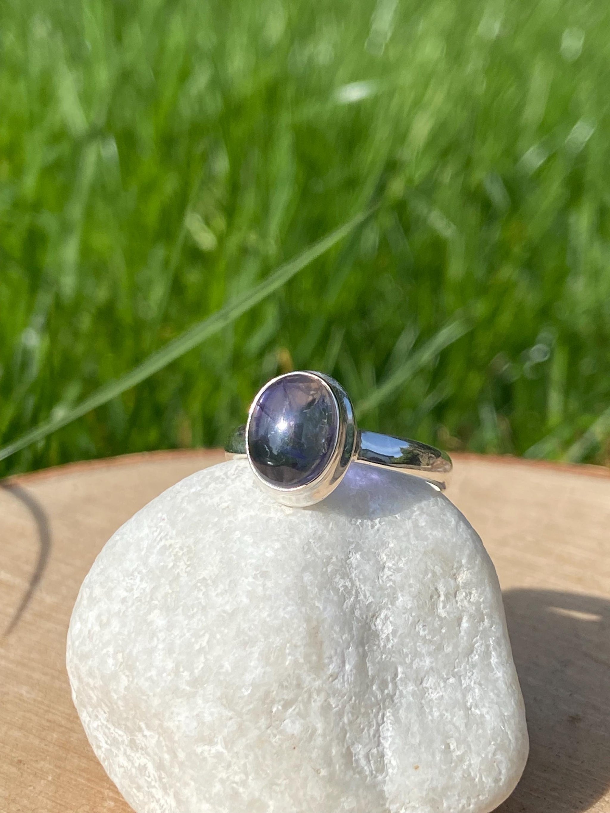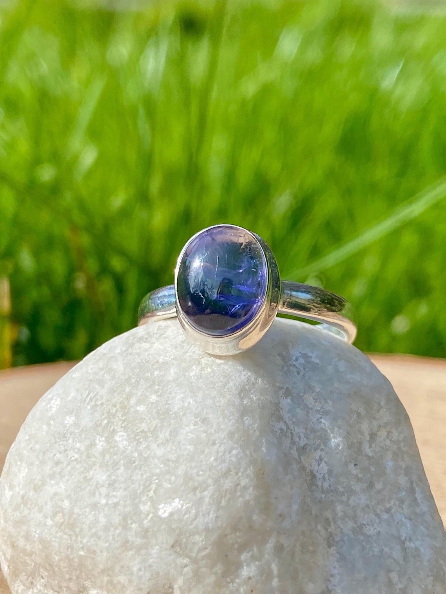 A rare and high quality Iolite or Lolite cabochon 925 Sterling silver ring