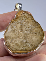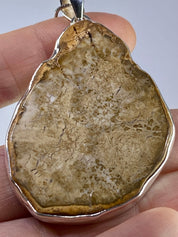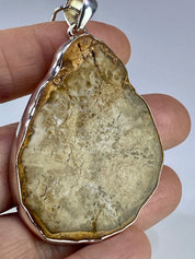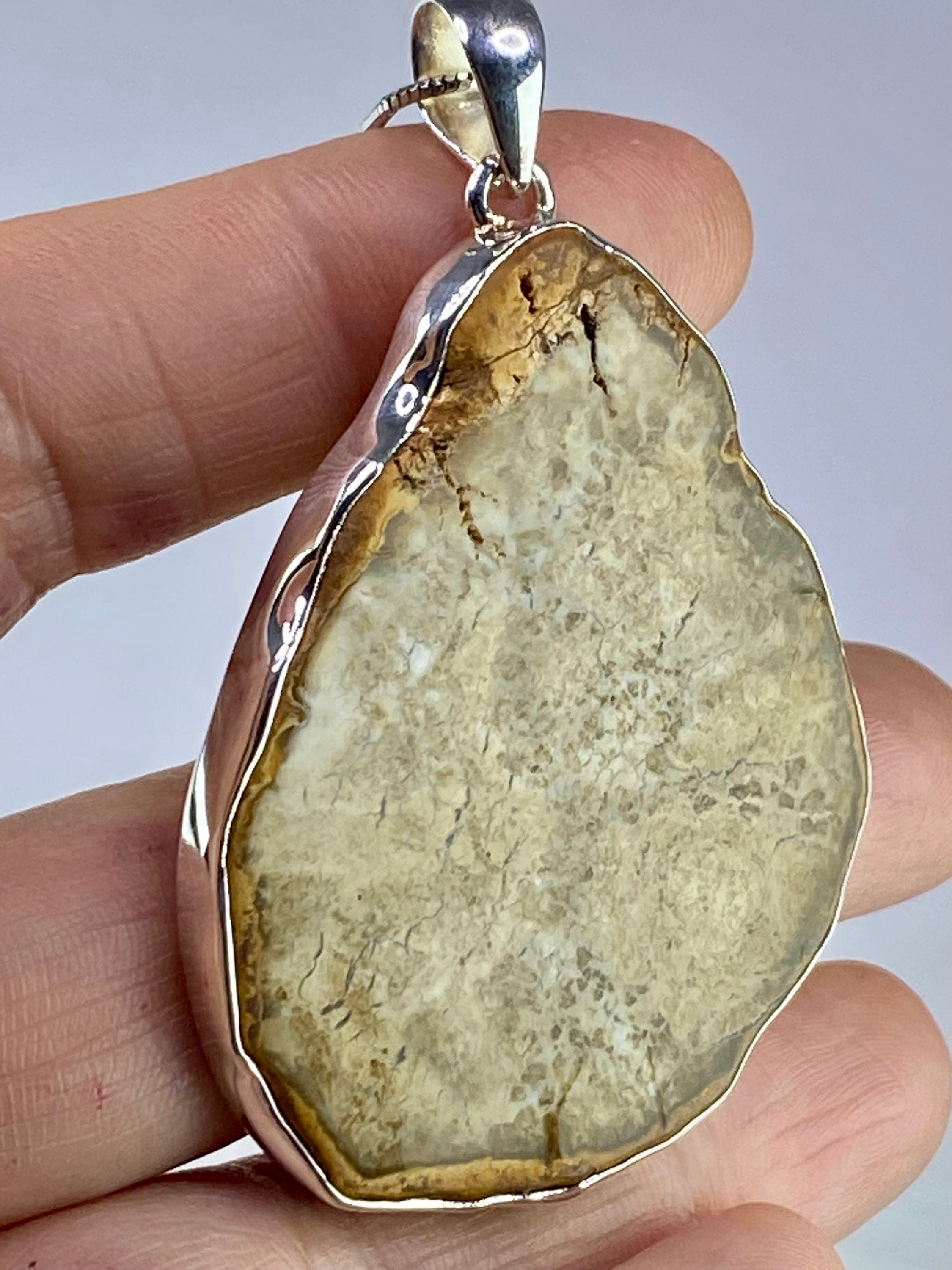 This stunning pendant, entirely handcrafted from a piece of petrified wood, comes from Madagascar.