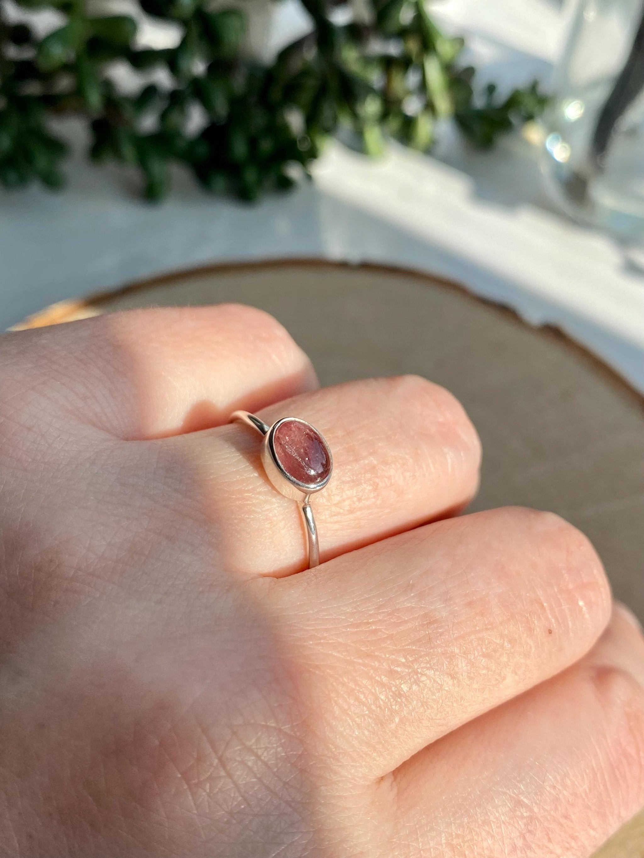 A dainty yet eye-catching Purple Tourmaline and 925 Sterling Silver ring.