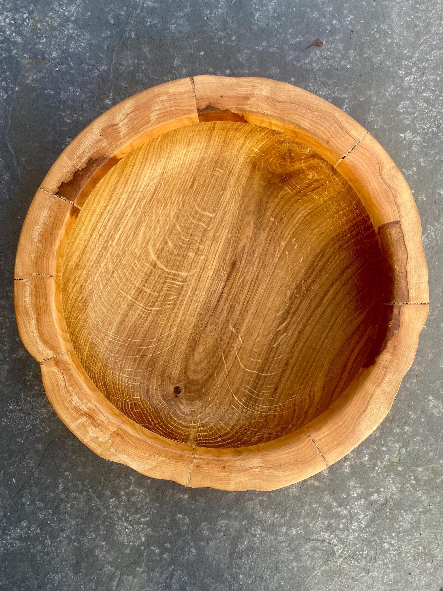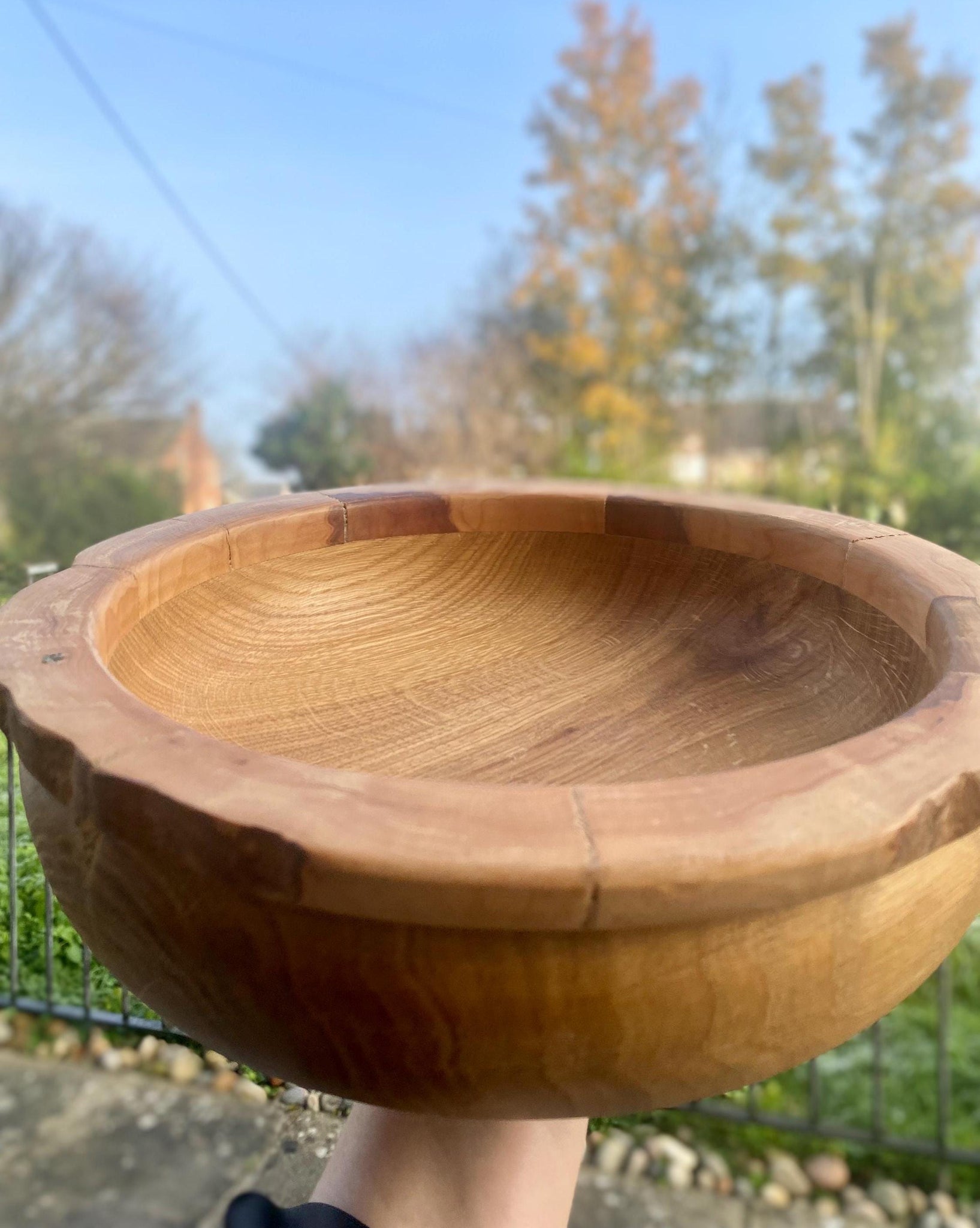 An absolutely stunning and unique, chunky Scottish Oak Huge Bowl with a Teak rim completely made and processed by hand.
