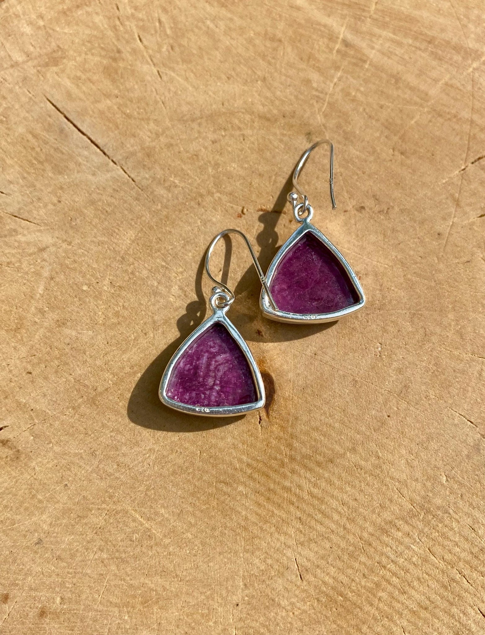 Triangle shaped Natural African Ruby Sterling Silver Dangle Earrings